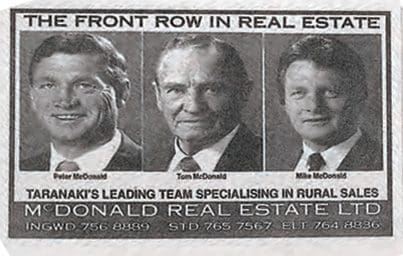 Another of Tom’s sons, Mike McDonald joins McDonald Real Estate, which quickly becomes the highest performing rural sales team in Taranaki.