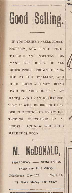 Mick opens the first McDonald Real Estate office on Broadway, in Stratford, where the company is still based today.