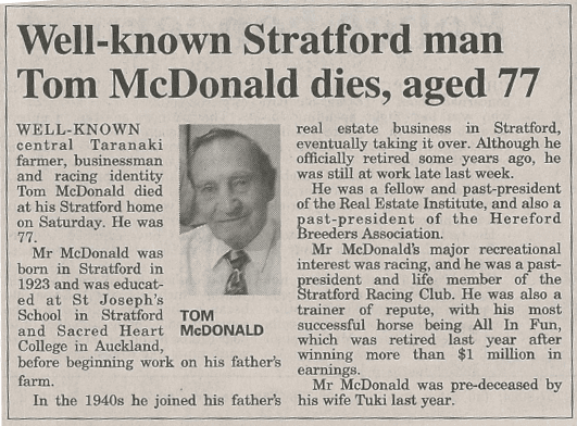 Tom McDonald passes away