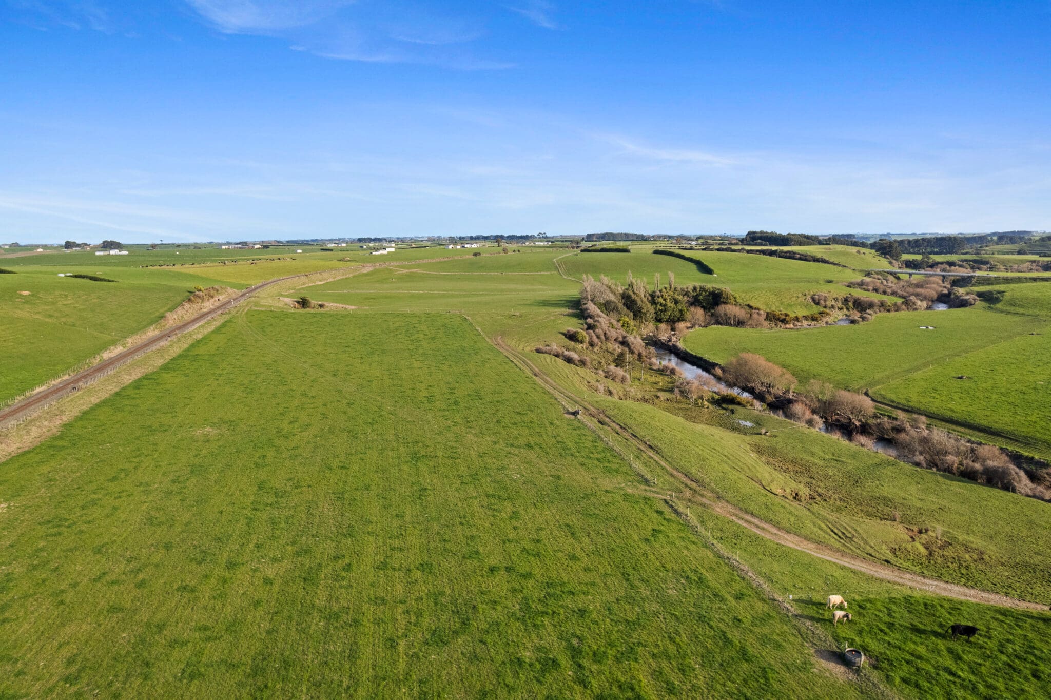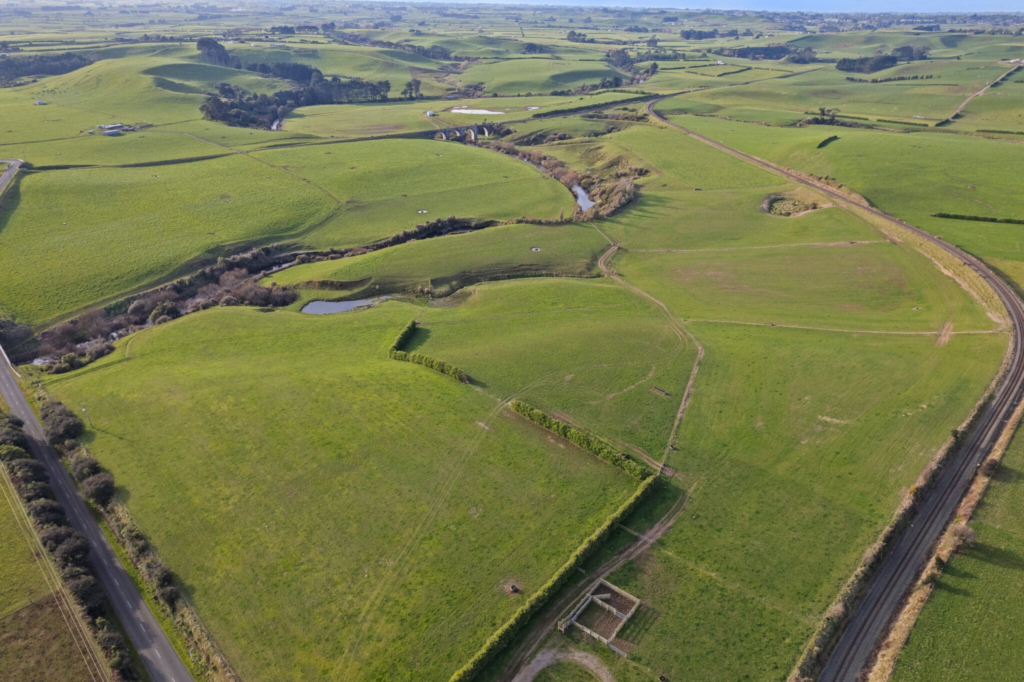 Winding along the Waingongoro River and passing underneath a striking railway bridge, the property is made up of approximately 22ha of mowable/cropable contour with the balance being perfect for grazing. The property is currently utilised as a wintering block for approximately. 200 cows over six weeks of winter then standing grass is sold off the property in October. A final cut of hay is then taken from the property in late November. Previously the property has been used for maize where approximately 15ha was planted on the property each season.