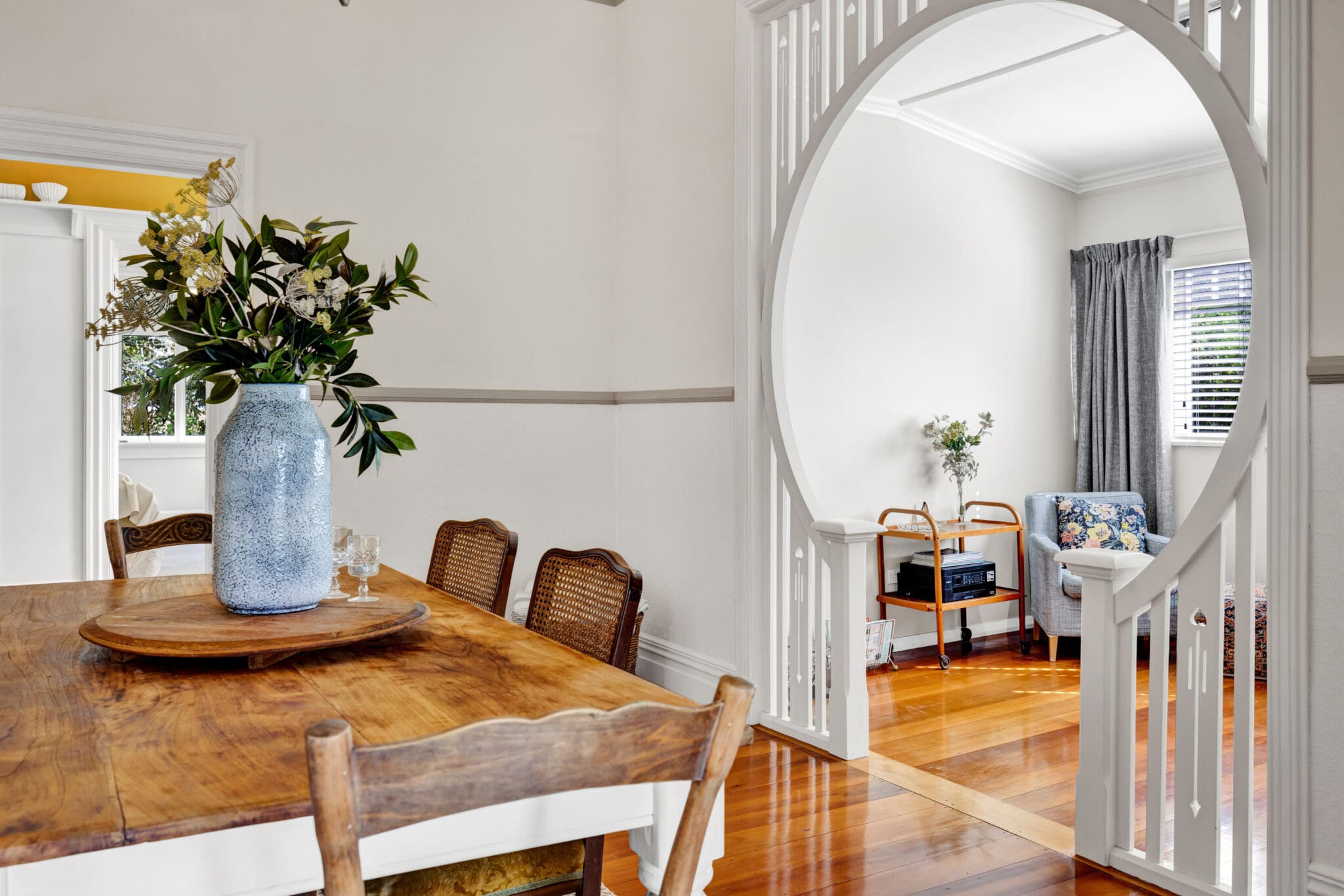 The heart of the villa is the expansive open-plan kitchen and dining area, which exudes the welcoming charm of an English-style bed and breakfast. This inviting space is perfect for both everyday family meals and entertaining, seamlessly connecting to a formal dining room and a cosy sitting room, while a separate lounge adds to the versatility of the home, catering to a variety of needs and occasions. Surrounding the home, covered porches invite you to step outside and enjoy the garden spaces, making it easy to find a spot to unwind.
