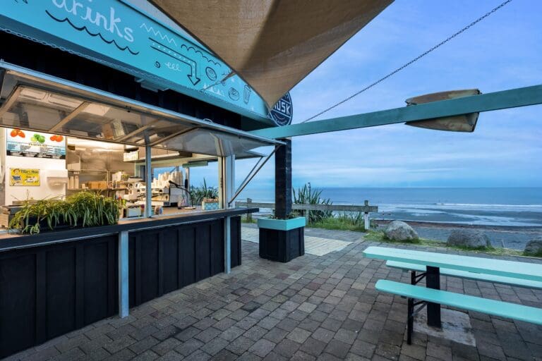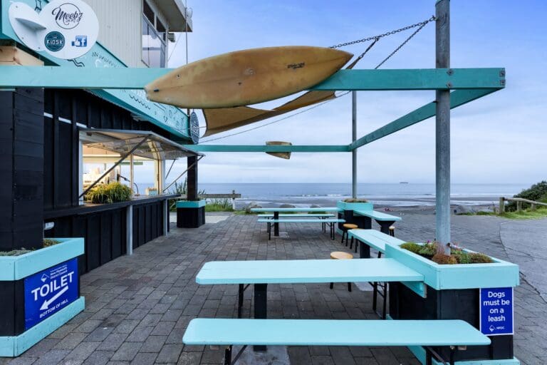Discover New Plymouth’s premier cafe, ideally positioned on the finest swimming and surfing beach in Taranaki! Step directly onto the iconic Waterfront Walkway from our doorstep, leading you down to the inviting warmth of the sandy shores and surf.