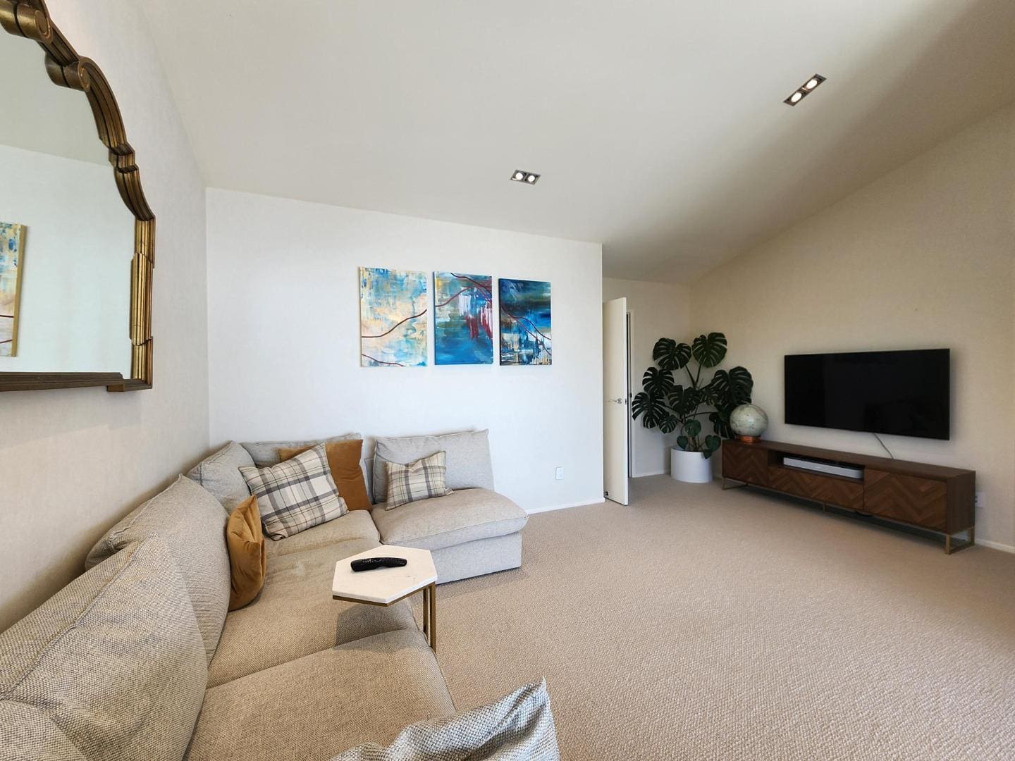 Perfect for extended family or guests, the lower level offers two additional bedrooms, a large bathroom, a spacious media room, and a convenient kitchenette. Sliding doors open directly to the beautifully landscaped grounds and beach beyond.