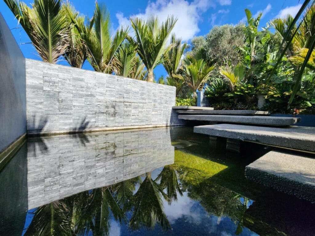 A tropical entrance with a serene fishpond sets the tone, guiding you through the front door with uninterrupted ocean views ahead.