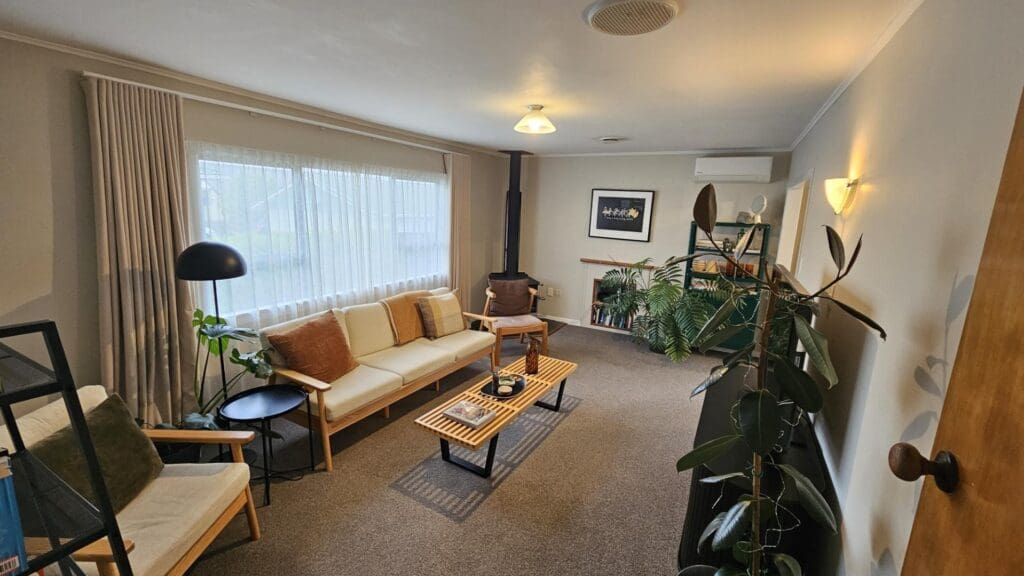 Located in a quiet street in Merrilands. Open plan living, warm dry home that has both a fireplace and heat pump, HRV and heat transfer system. Little patio area off the dining room. Kitchen with dish drawers. Three bedrooms and a bathroom with shower and a separate toilet. Low maintenance yard and gardens. Fully fenced and off-street parking with space for two vehicles. This home is clean and tidy and ready for new tenants now!