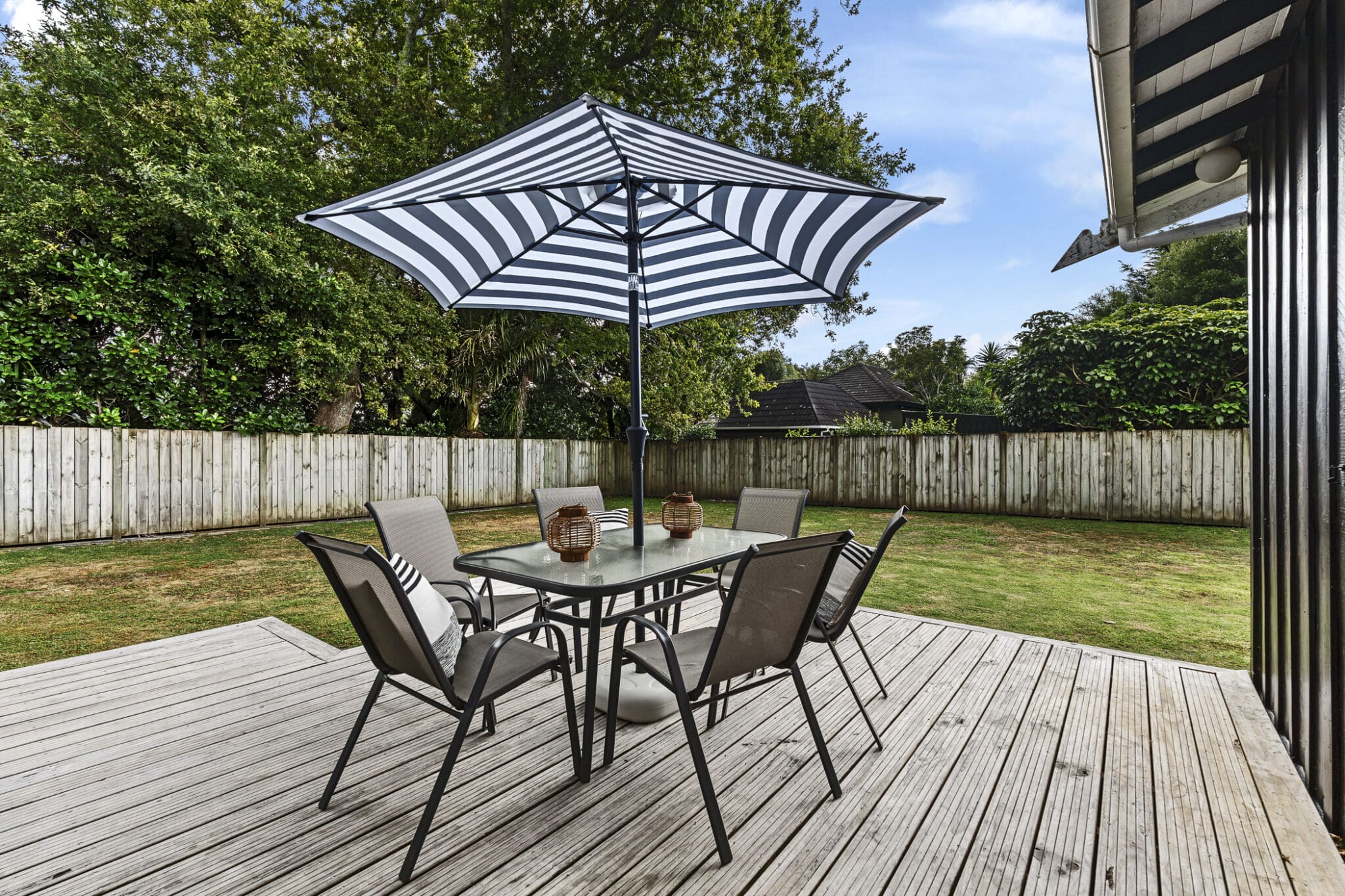 French doors lead off the beautiful modern kitchen to a deck area looking out to your back garden, what a spot to sit and enjoy morning coffee or a BBQ and beers!