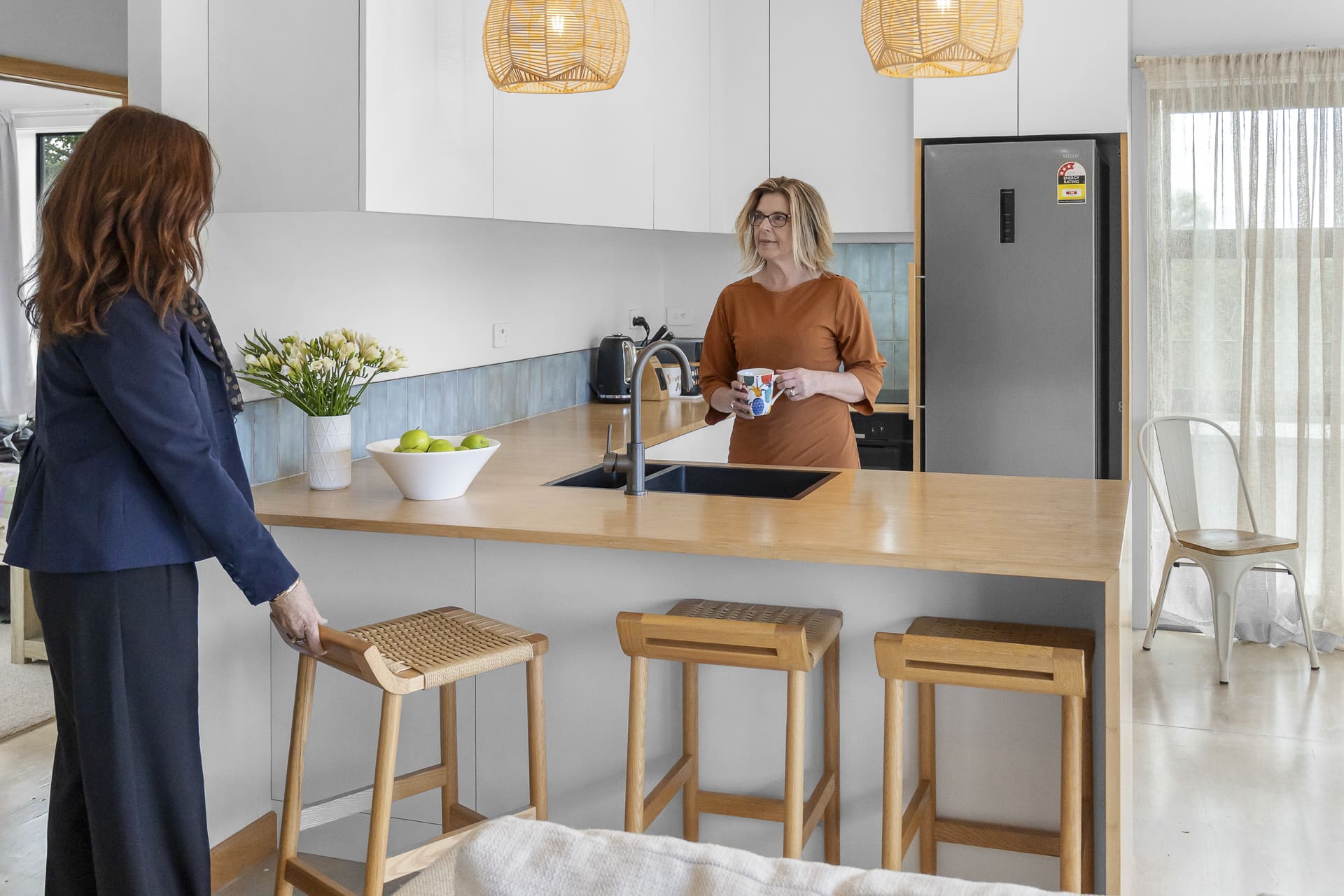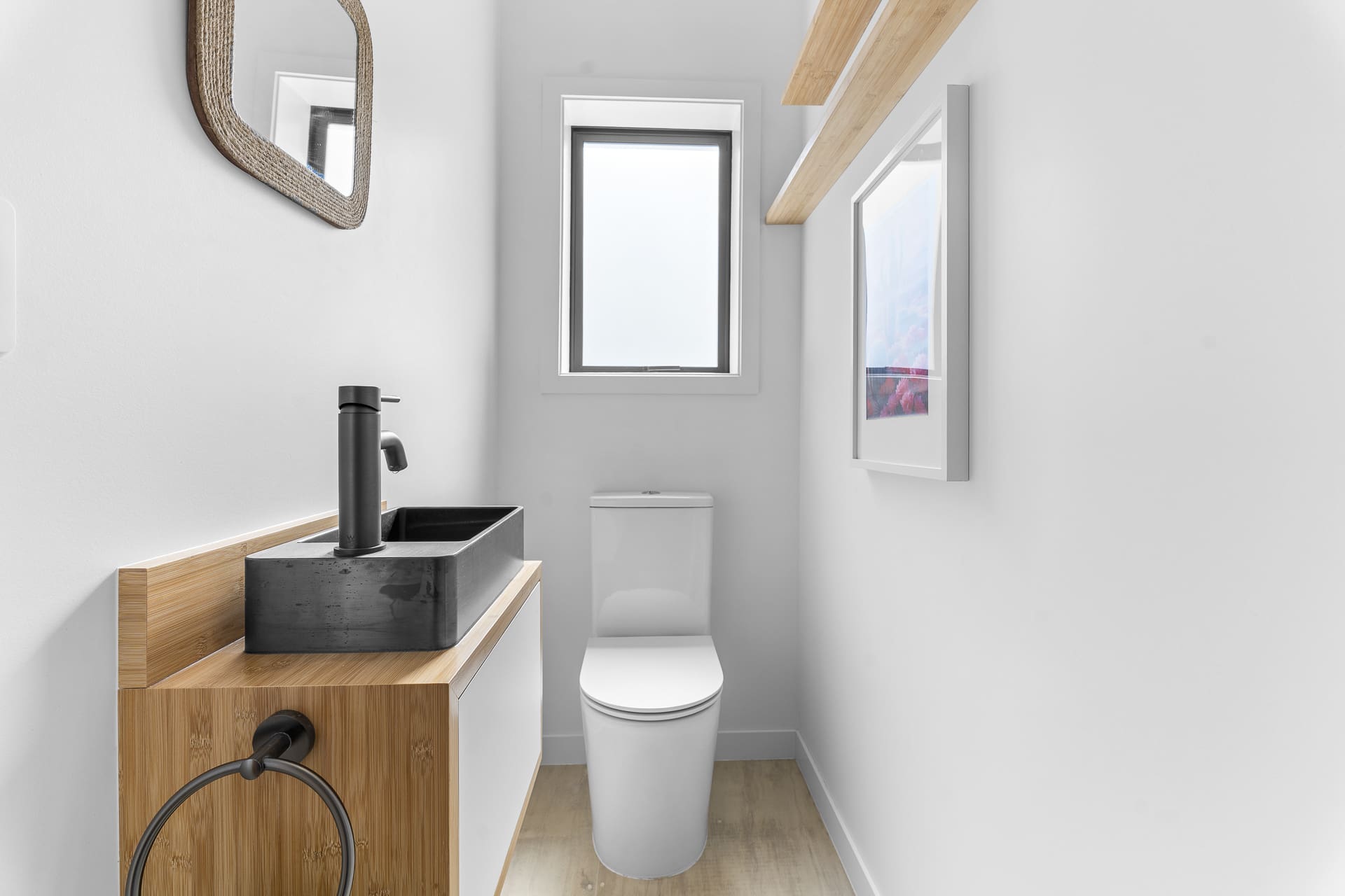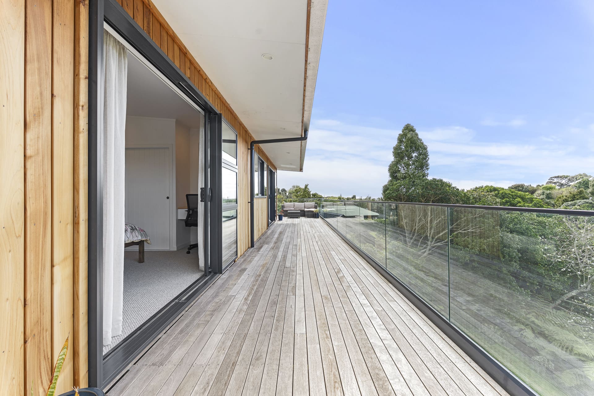 The home comprises four bedrooms, including a master suite with built-in wardrobe and direct deck access – wake to restful views every morning. A beautifully appointed family bathroom includes a bath, separate shower, and toilet, while a second separate toilet with vanity adds convenience.