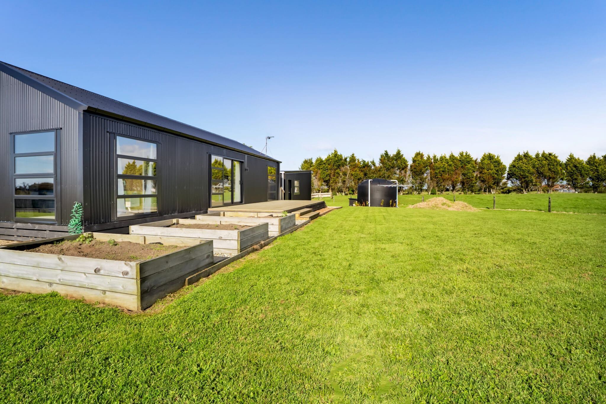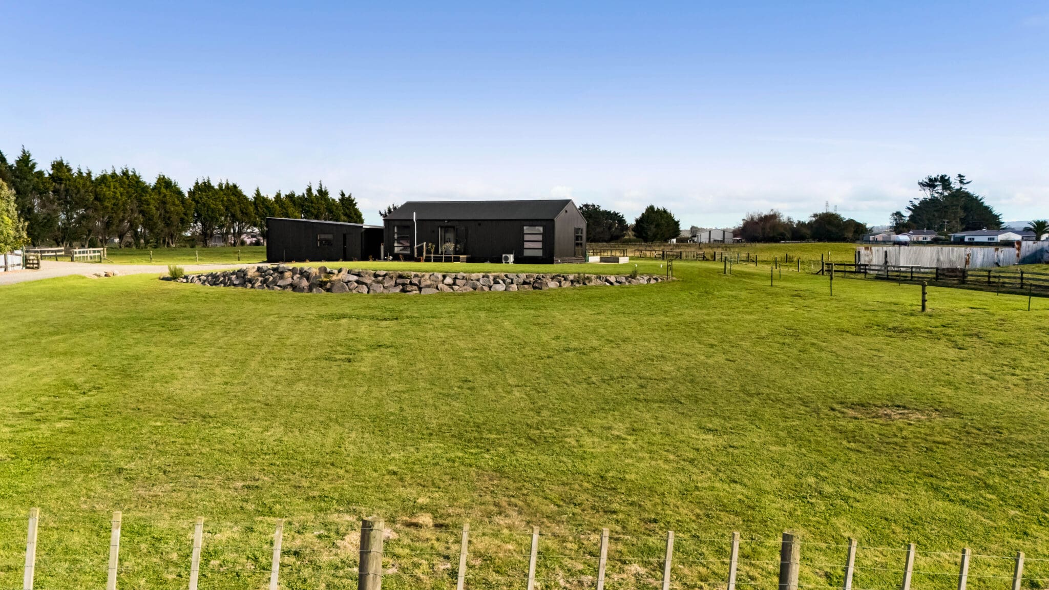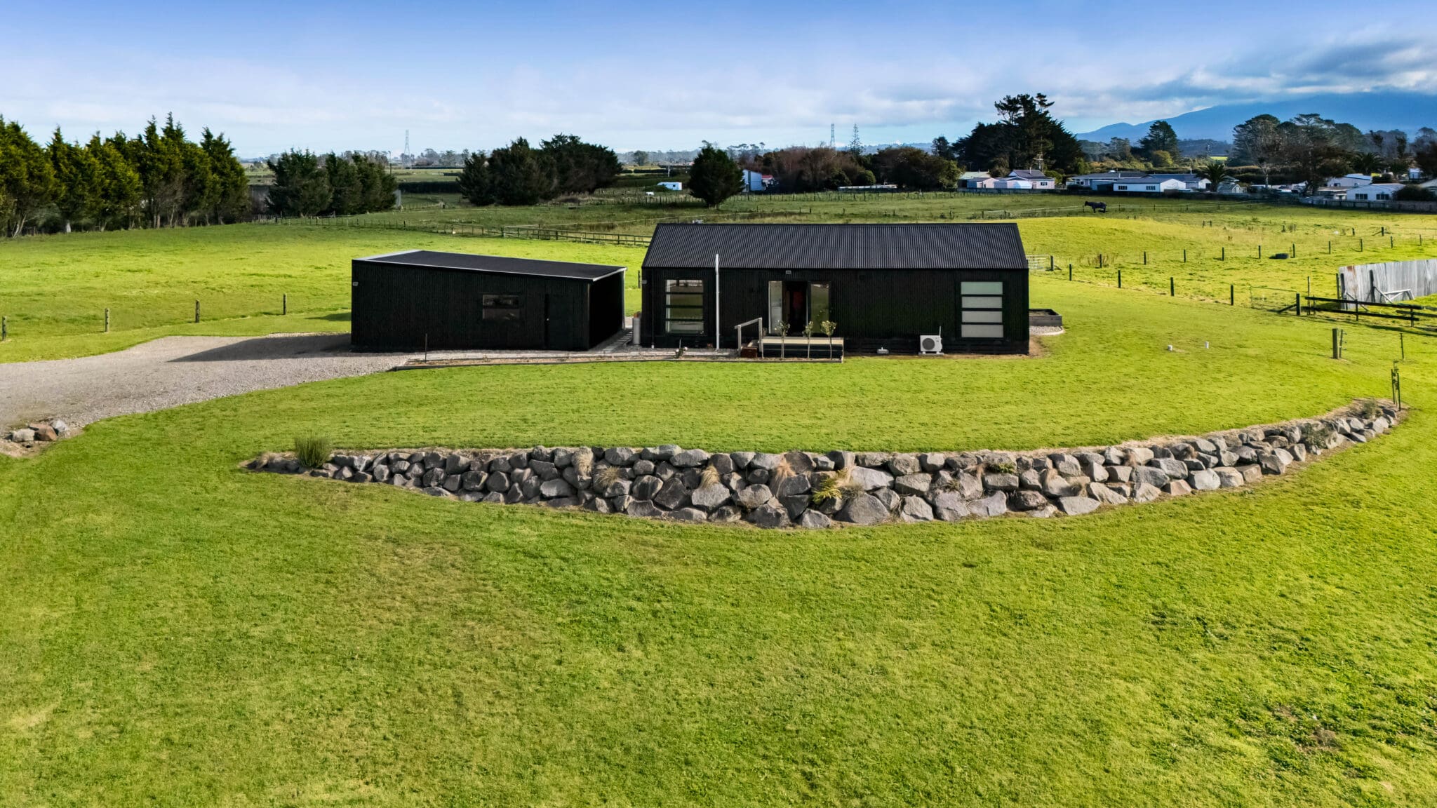 Only a couple of years old, the dwelling has been thoughtfully designed to maximise space and functionality. Despite its compact footprint, the home delivers comfortable open plan living, three bedrooms, and two bathrooms – ideal for families, couples, or those looking to embrace a manageable lifestyle block without compromise.