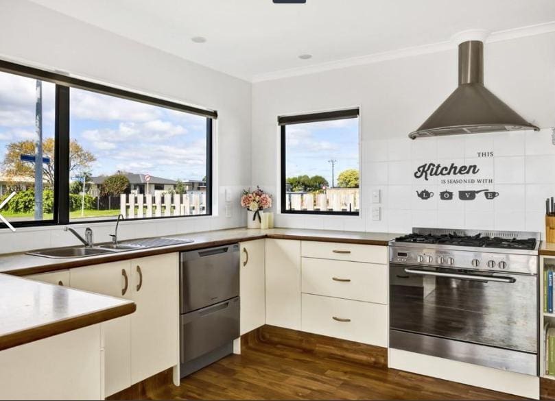 Stunning single level house, perfect for families, lots of space and great indoor/outdoor flow for entertaining guests. Spacious open plan kitchen, dining and living through to the private decking. A separate lounge room with a log burner and a heat pump in the living room making the house cosy, warm and dry. Three double bedrooms, master is complete with a walk-in wardrobe and ensuite bathroom. Good sized family bathroom with a separate toilet and laundry room. Double garage with internal access and plenty of off-street parking. Fully fenced, flat, low maintenance section with a sheltered area and spa pool to relax and unwind.