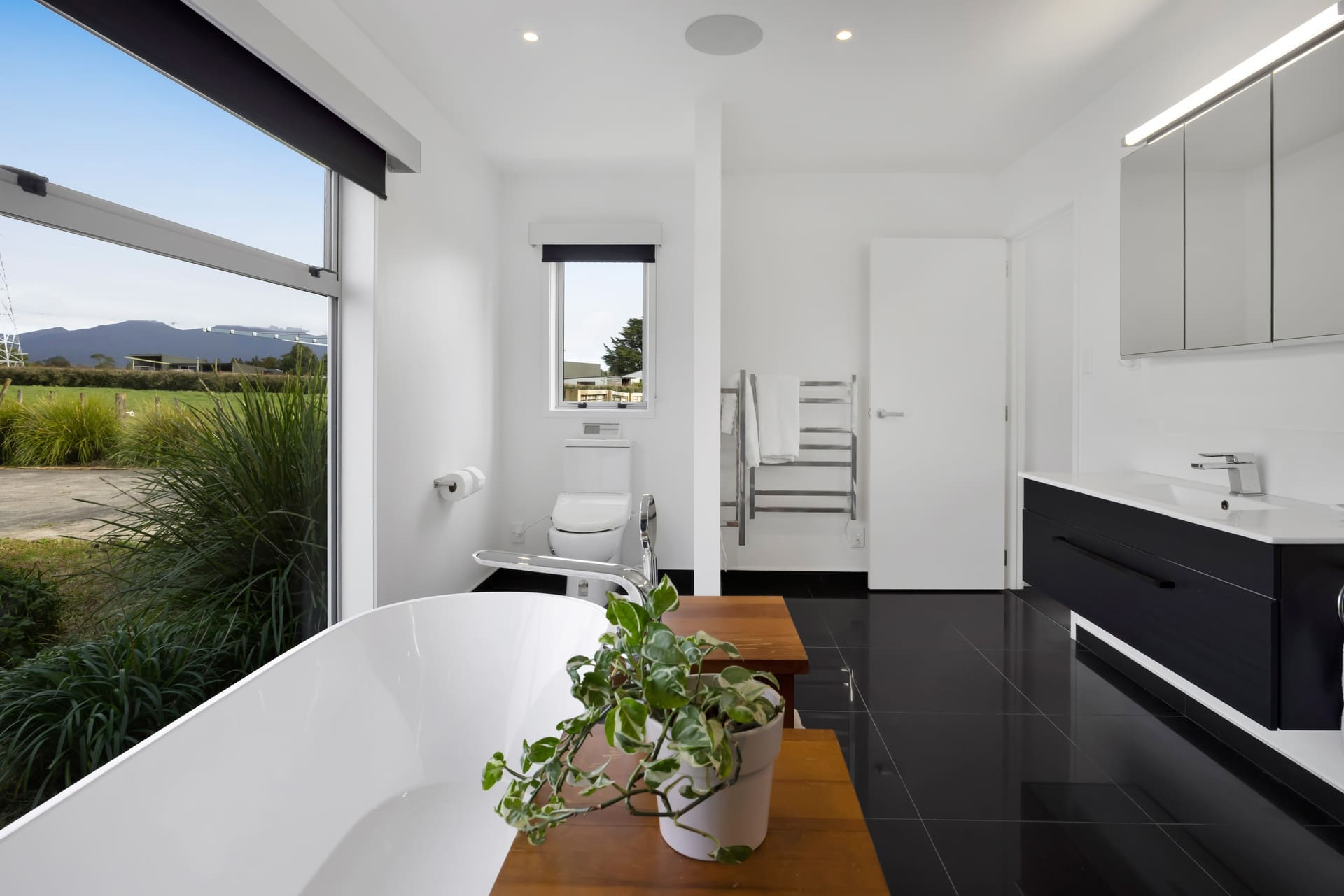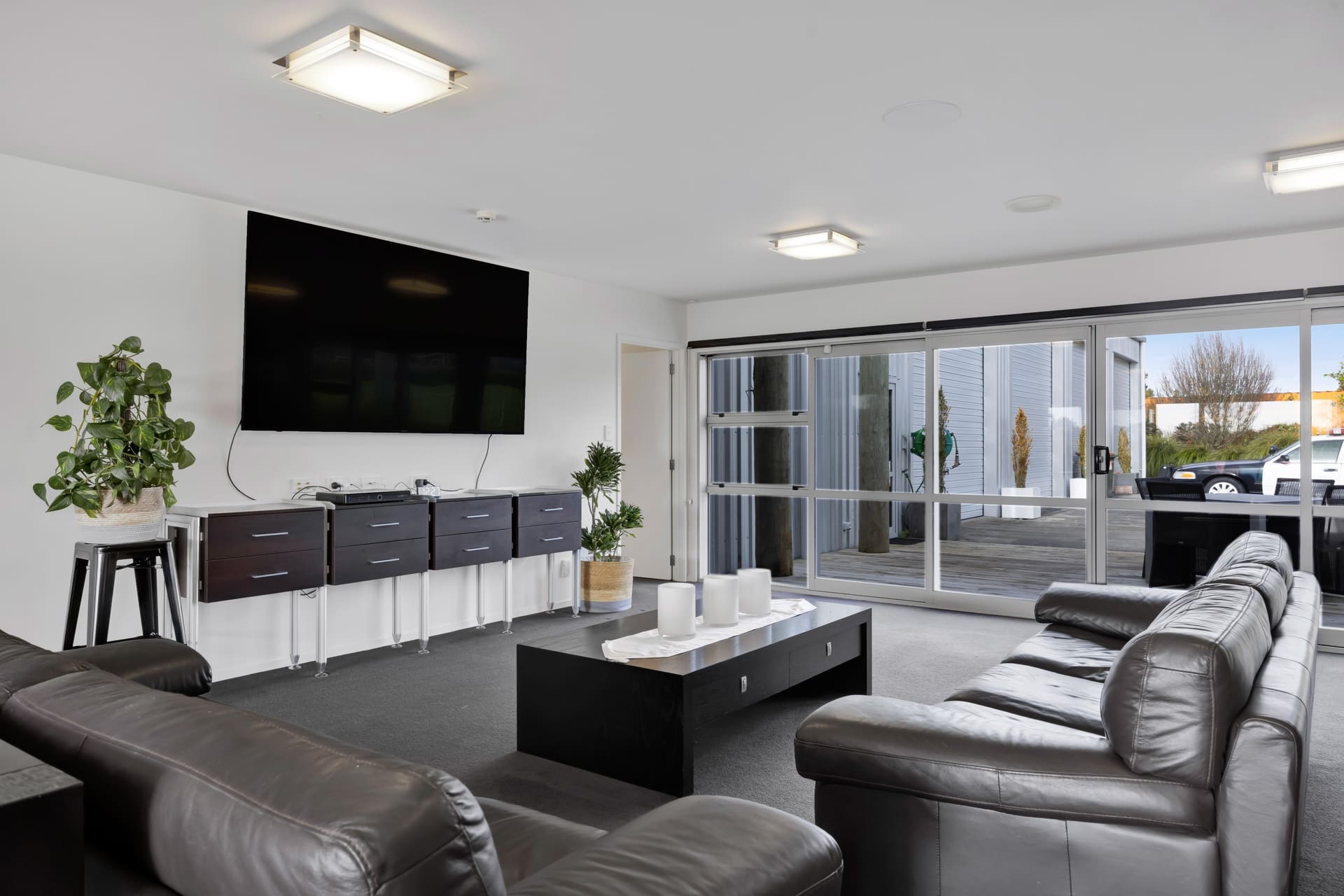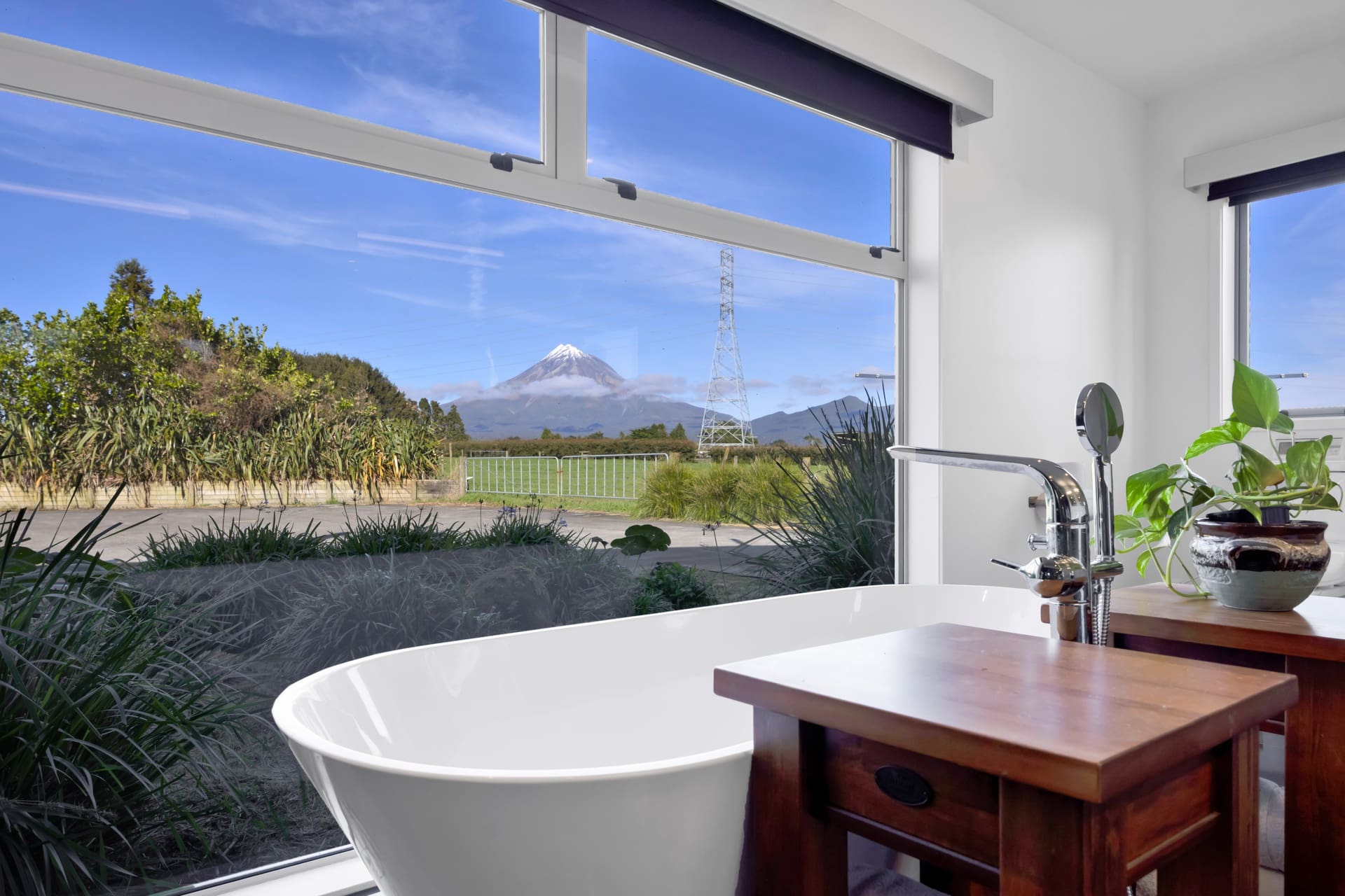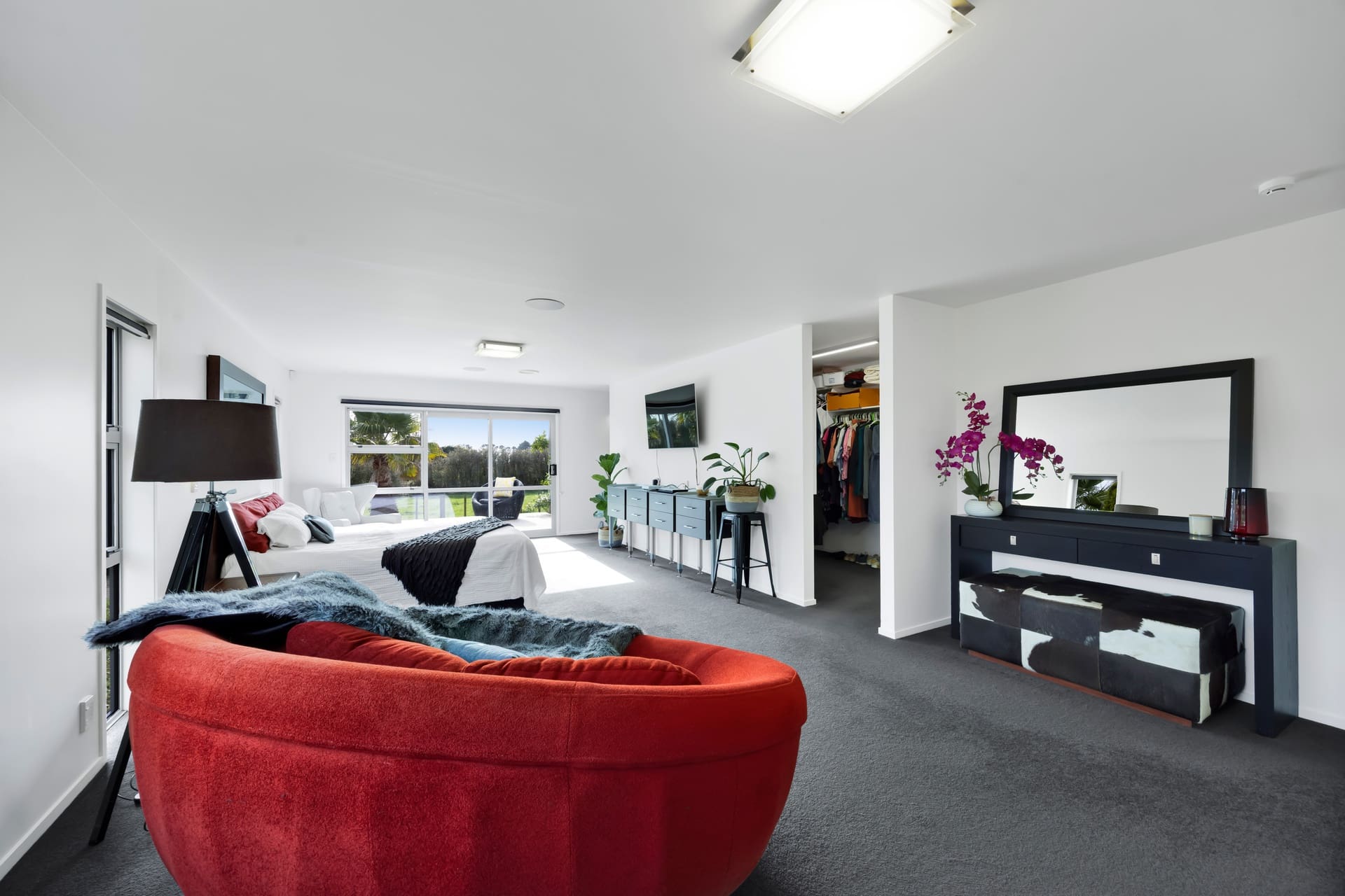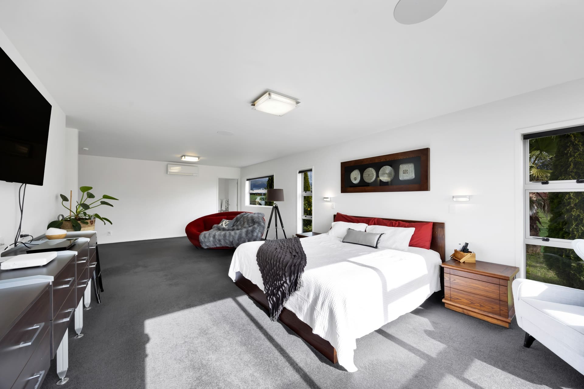 The master suite offers a dedicated adults’ retreat – a peaceful space to relax, watch TV, or enjoy some downtime away from the family buzz. Double insulated doors help ensure that the sounds of busy family life remain outside, giving you your own quiet sanctuary. The master ensuite offers true indulgence, boasting a spacious triple-shower setup and a luxurious bath perfectly positioned to soak in the magnificent views of Mount Taranaki – particularly breathtaking on a moonlit night. Privacy is ensured with custom screening and day/night blinds, allowing you to relax in peace, day, or night.