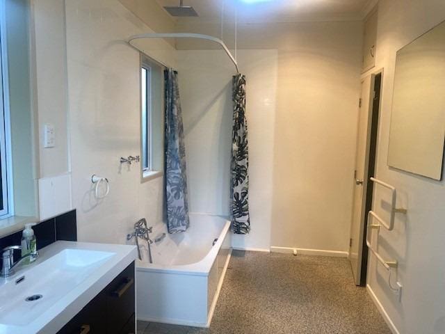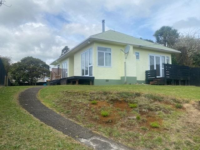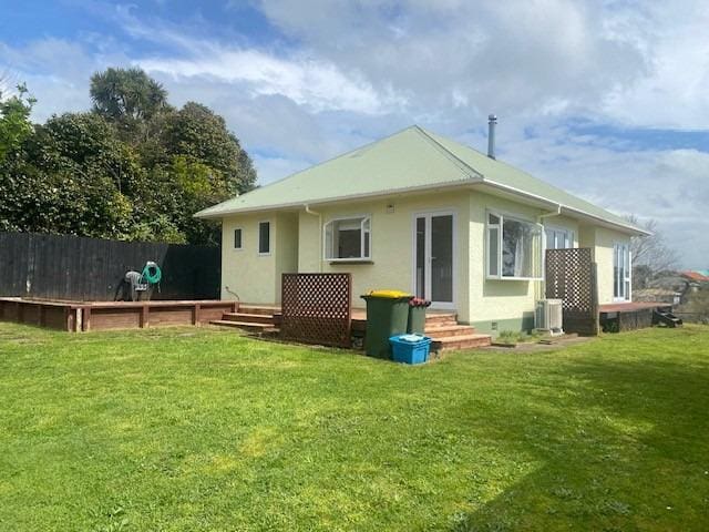 ELEVATED & SUNNY – 3 BEDROOMS. 1 BATHROOM HOUSE. Safe and secure this property is located up off the road capturing lots of sun and natural light. Spacious kitchen and dining through to the living room with a wood burner and a heat pump. All double sized bedrooms with great storage and wardrobes. Large family sized bathroom with the laundry included. Small balconies off the two front bedrooms and a deck at the rear in the flat, fenced, low maintenance section. A stroll away from local schools, shops, supermarket, chemist and Pukekura park. Pets negotiable here.