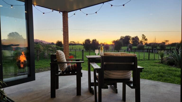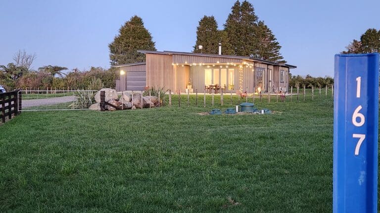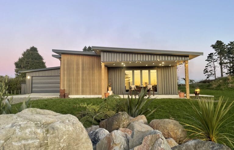 Featuring an open plan living area with a designer kitchen, walk-in pantry, incredible underfloor heating throughout with polished concrete floors and a log fire. Lovely indoor-outdoor flow to the concrete patio area from the central living space – a sheltered spot for morning coffee or enjoying a BBQ in the evening.