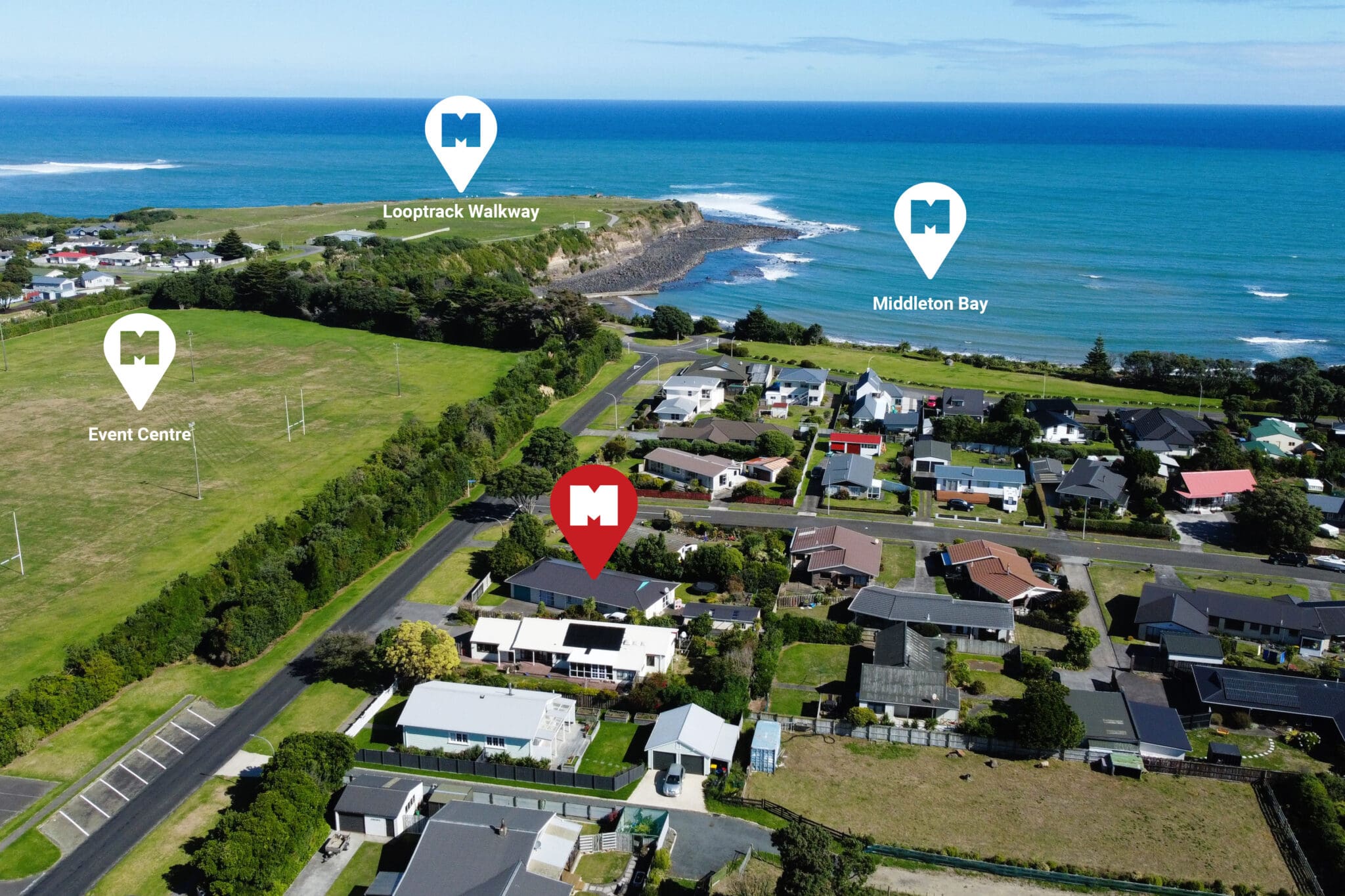 Enjoy daily walks down to the beach with Middleton Bay mere metres from the property, also convenient to Opunake township a similar easy walking distance to shops, medical centre, movie theatre, cafes and pubs.