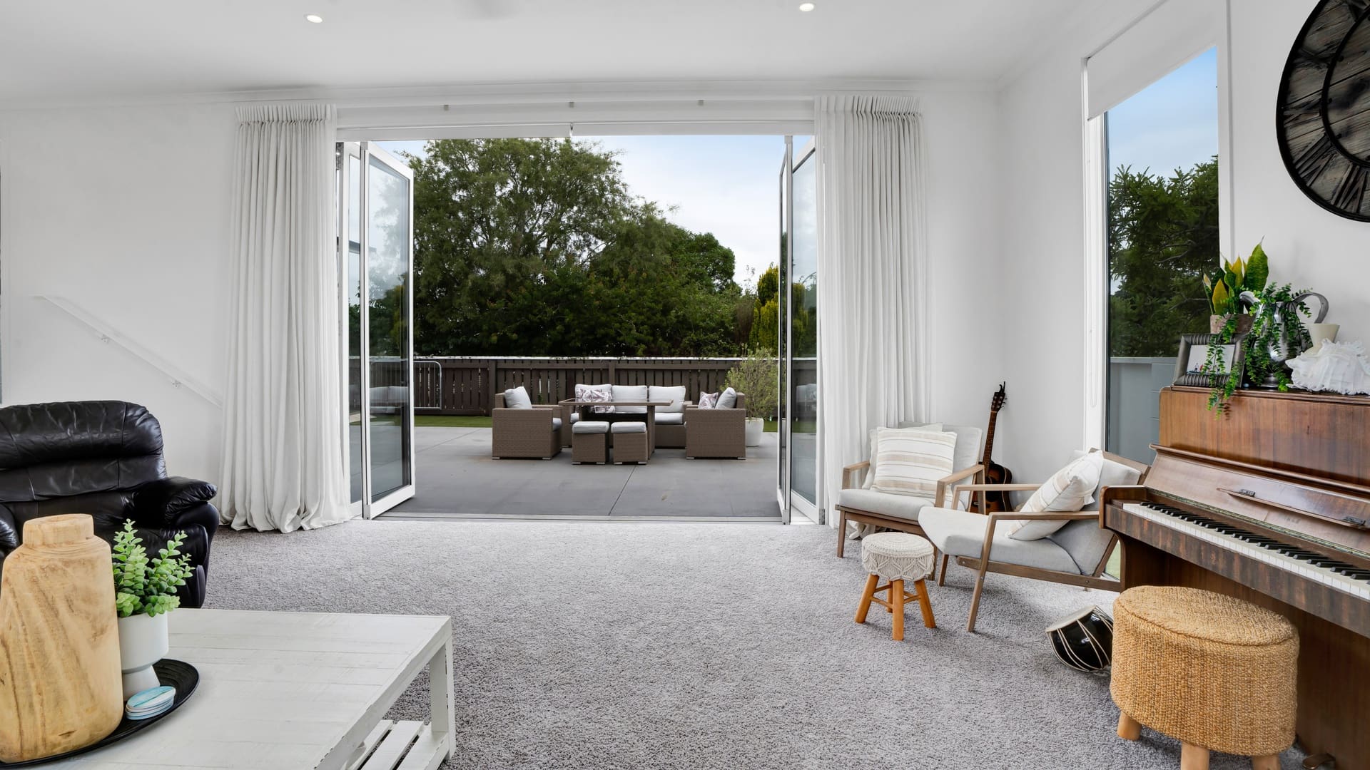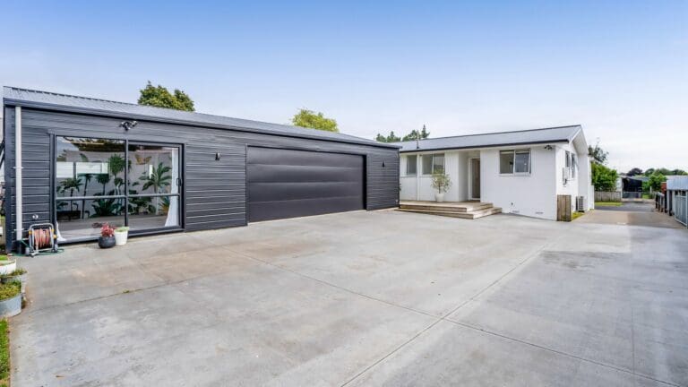 The exterior complements the home’s elegance with a large, paved parking area and a generous double garage. Within the garage, discover a versatile studio, storage, or rumpus room that enhances the usability of your space, all under the same roof.