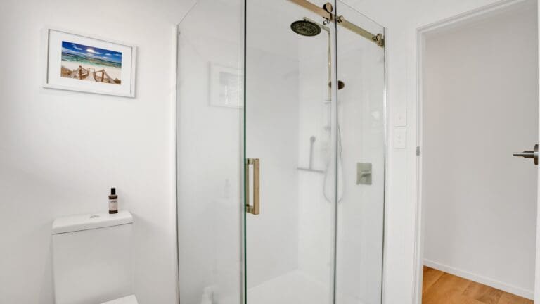 This stunning residence features thoughtfully designed bathrooms, with a combination bath and toilet in one room, and a separate shower with toilet in the second, ensuring convenience and comfort for you and your guests.
