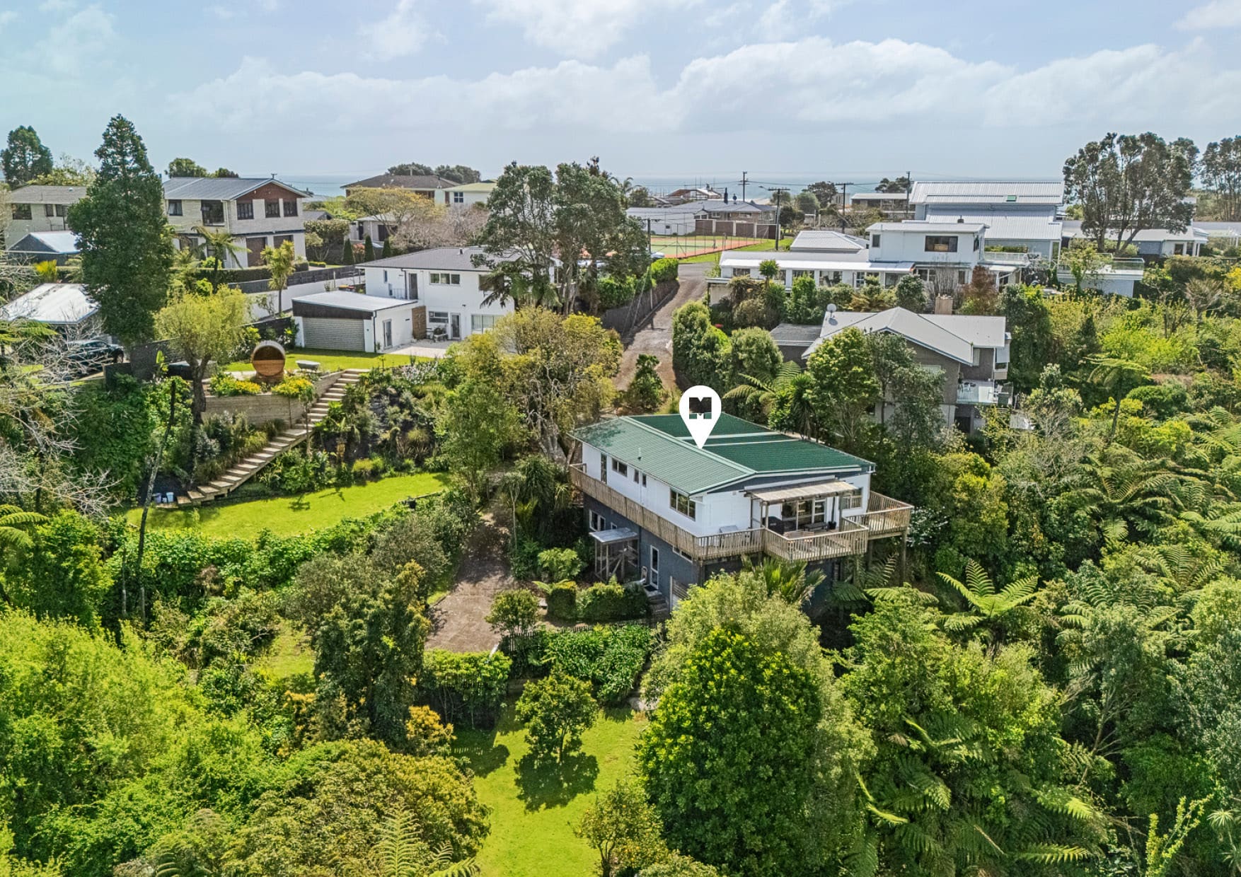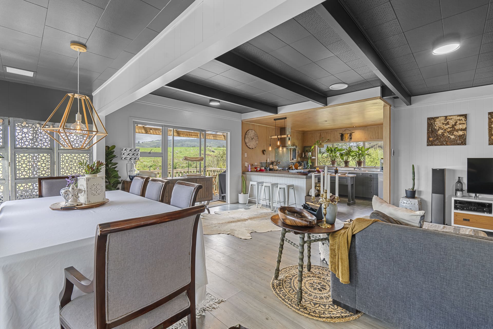 Step inside to discover a warm, inviting interior featuring open-plan living spaces that flow seamlessly onto large sun-drenched decks and garden delights – perfect to unwind and take in the tranquil, lush green outlook. The kitchen delivers character and style with the bonus of a breakfast bar and scullery alongside. The expansive floor plan over two levels offers plenty of space for families, with four generous bedrooms and two bathrooms. Comfort is assured year-round with a log fire and heat transfer system, ensuring warmth throughout.