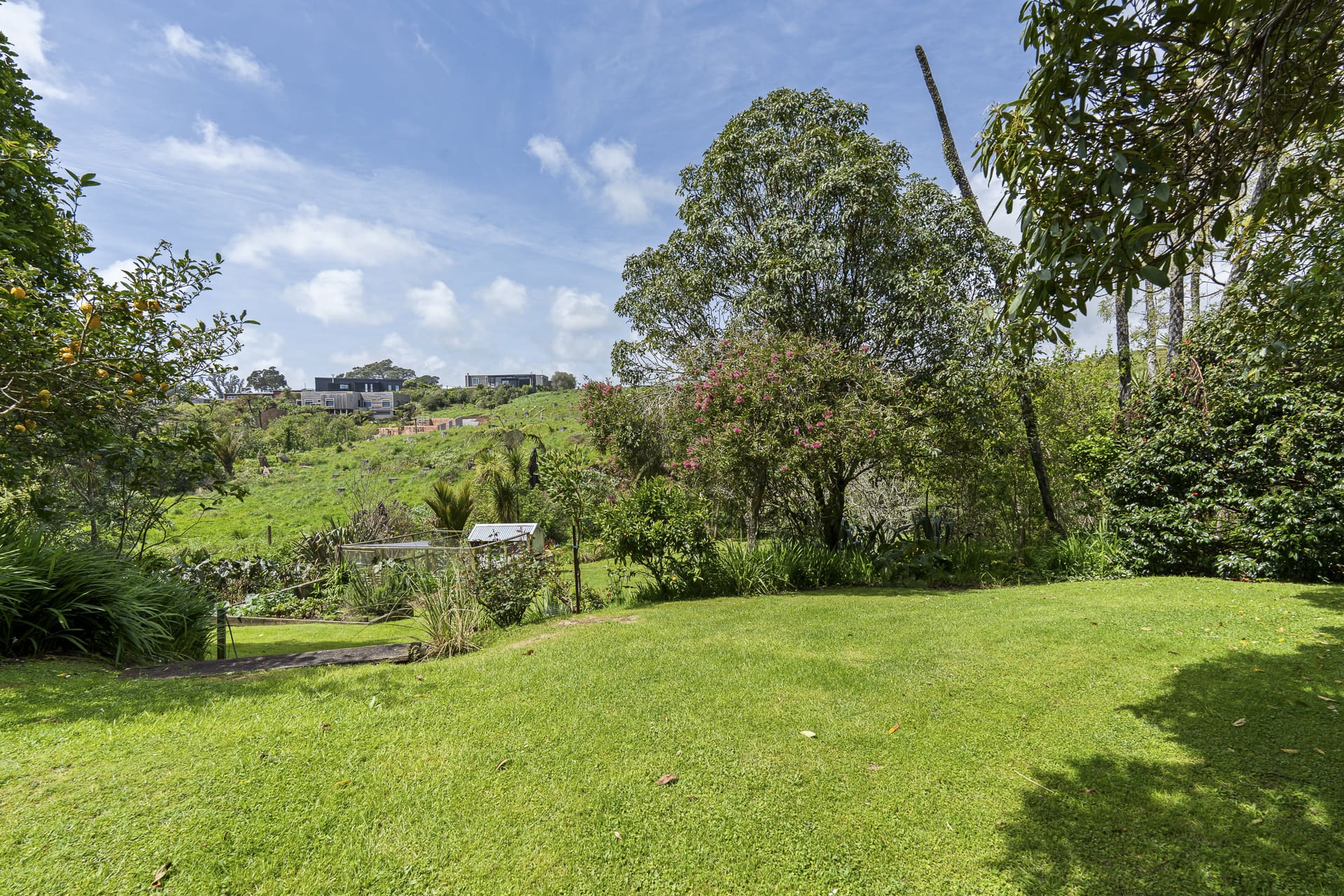 Outdoors, the property continues to impress. Take a stroll through the established gardens with lawns, fruit trees, and chicken run – all creating a true sense of peace and calm. The views of the ranges and distant sea add a magical touch. A single garage with mezzanine storage, carport, and excellent off-street parking complete the package.