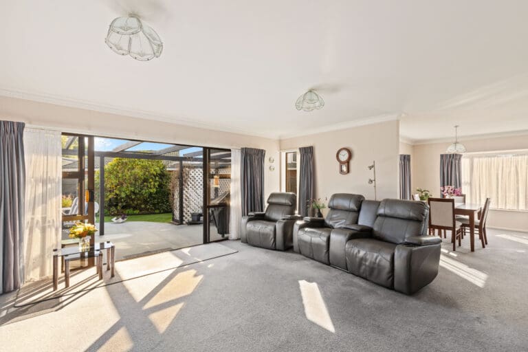 The spacious open-plan living areas extend seamlessly to the outdoors, where manicured gardens, raised vegetable beds, fruit trees, and a well-designed backyard provide excellent indoor-outdoor flow from both the lounge and master bedroom. The property is fully fenced and offers mountain views. A generous double garage with internal access includes space for a workshop and a separate laundry adds to the home’s practicality. Located in the always popular Highlands Park, the home is in close proximity to Mangorei and Welbourn Primary Schools as well as Highlands Intermediate.