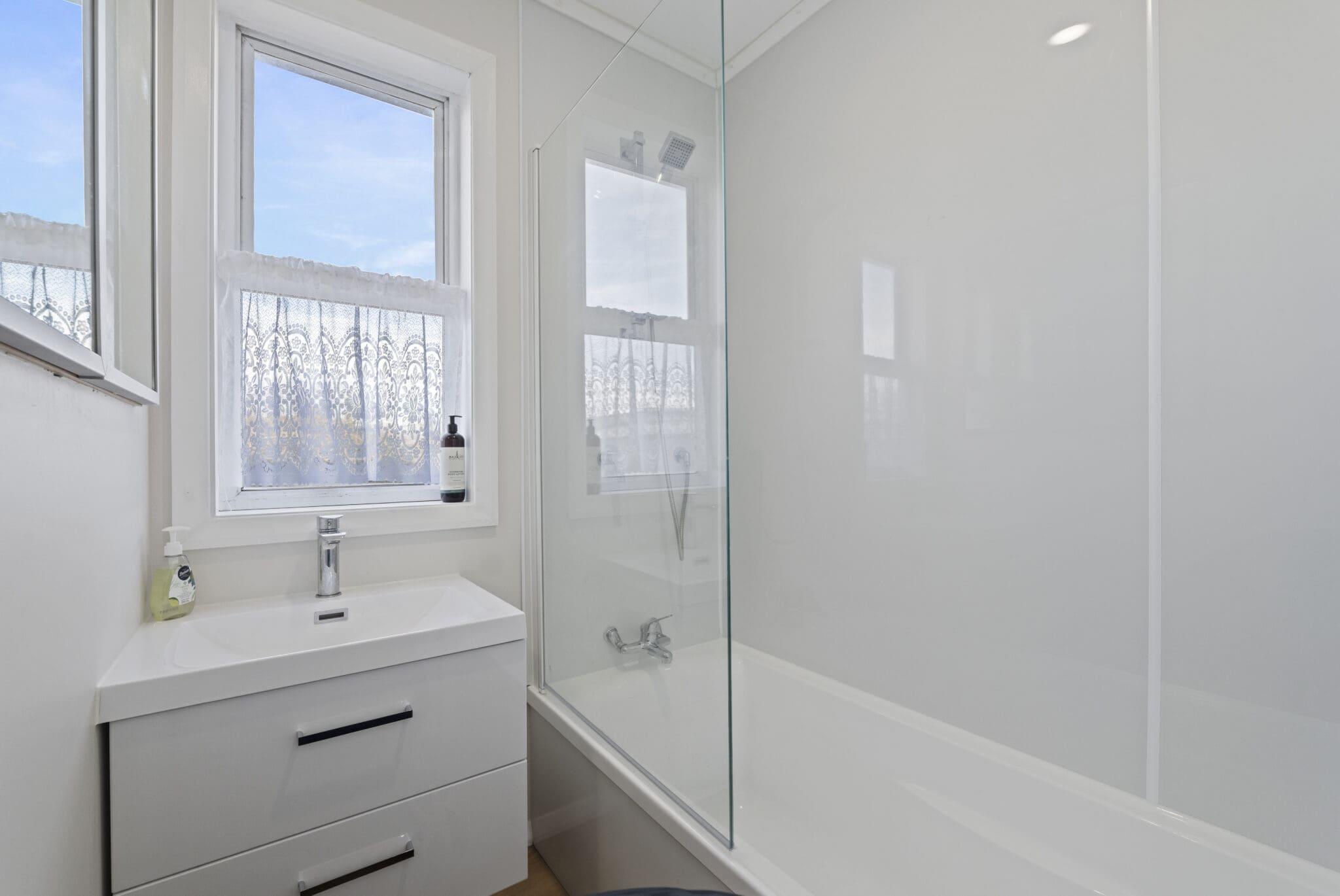 This property has three bedrooms—two doubles and a comfortable single bedroom—making it perfect for families or those needing extra space for a home office or guest room. The smart layout contributes to a feeling of openness while still maintaining the intimate warmth that is so important in a family home. The main bathroom consists of a shower over the bath, separate toilet next door, and a second shower in the laundry, designed to cater to the needs of a busy household, ensuring convenience is at the forefront.