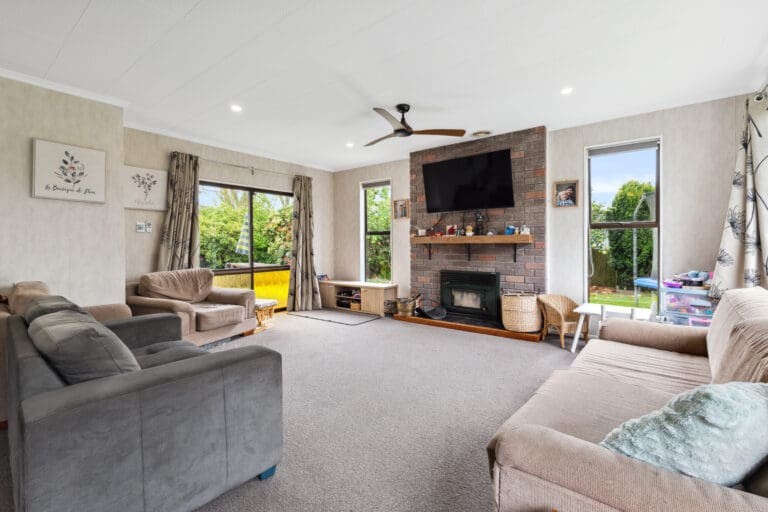 Three-bedroom home. Enjoy open plan living with a spacious kitchen, dining, and living area, designed for easy family living. The large living room boasts an inbuilt fireplace, perfect for cosy winter nights, and opens onto a sunny patio – ideal for BBQs and family fun in the garden.