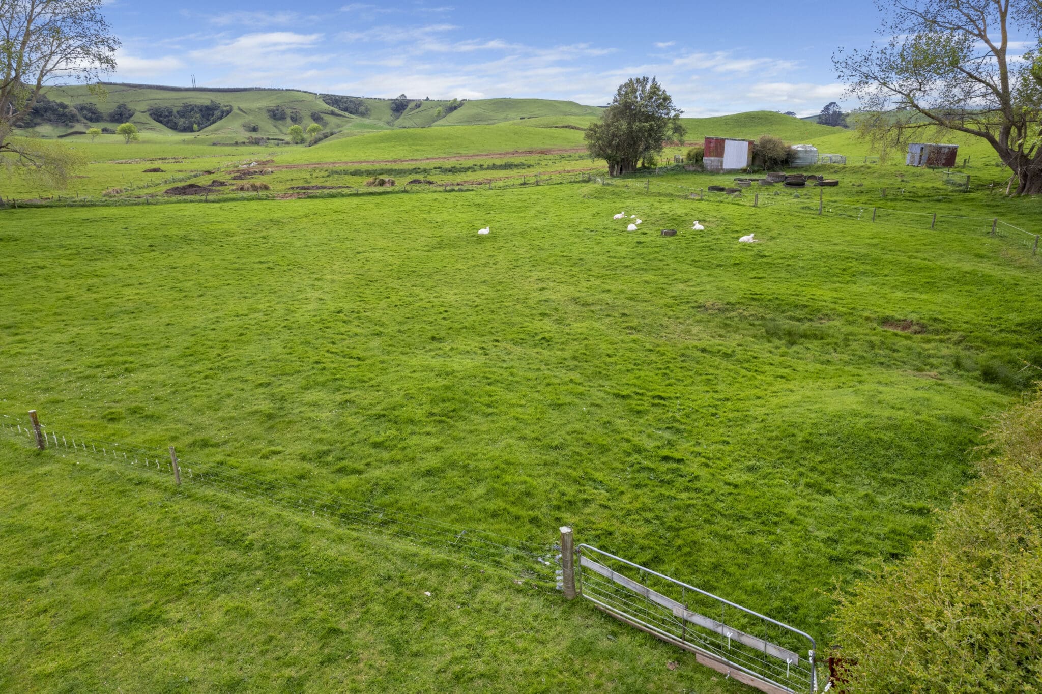 Practical and spacious outbuildings, A three-bay pole shed provides plenty of space for vehicles, storage, or workshop use.