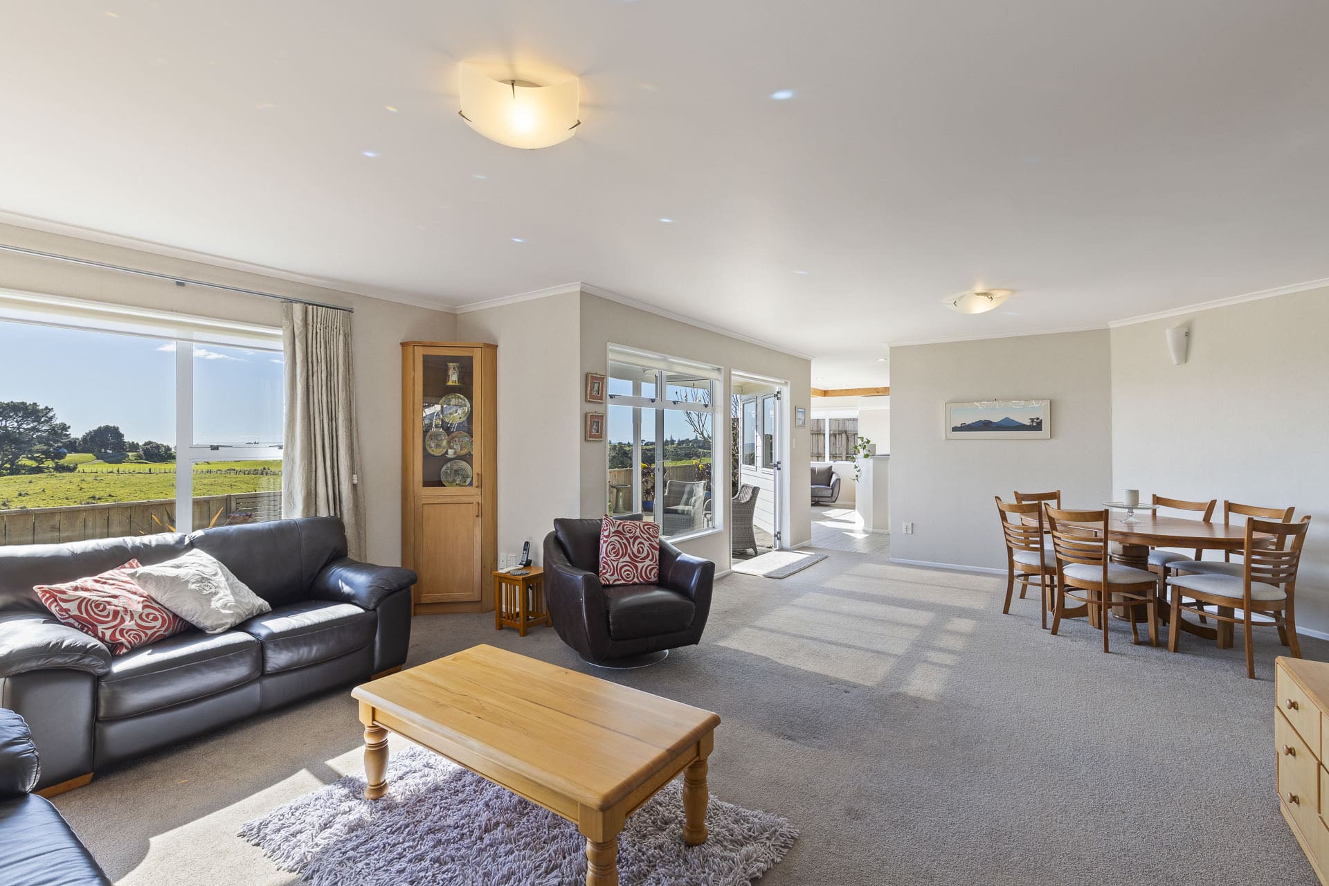 The well-appointed, modern kitchen delivers with functional design and abundant bench, pantry and storage space. Spacious living warmed with heat pumps flow to the partially covered outdoor patio area, a perfect spot to relax and enjoy the peaceful position and vista beyond.
