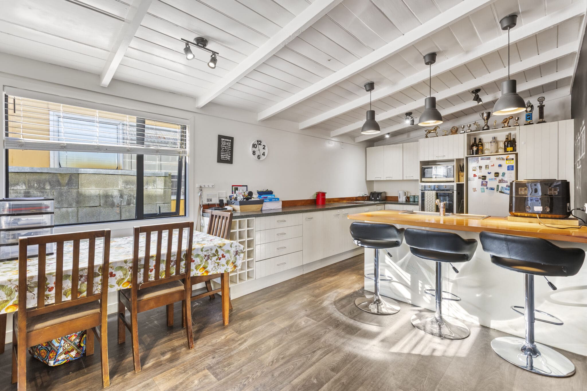 High stud ceilings in the lounge, hallway and bedrooms gives you a sense of spaciousness. Open plan living with a modernised kitchen, dining and lounge area. Slider access leads to a paved outdoor space. Polished concrete floors in the kitchen and bathroom are added features.