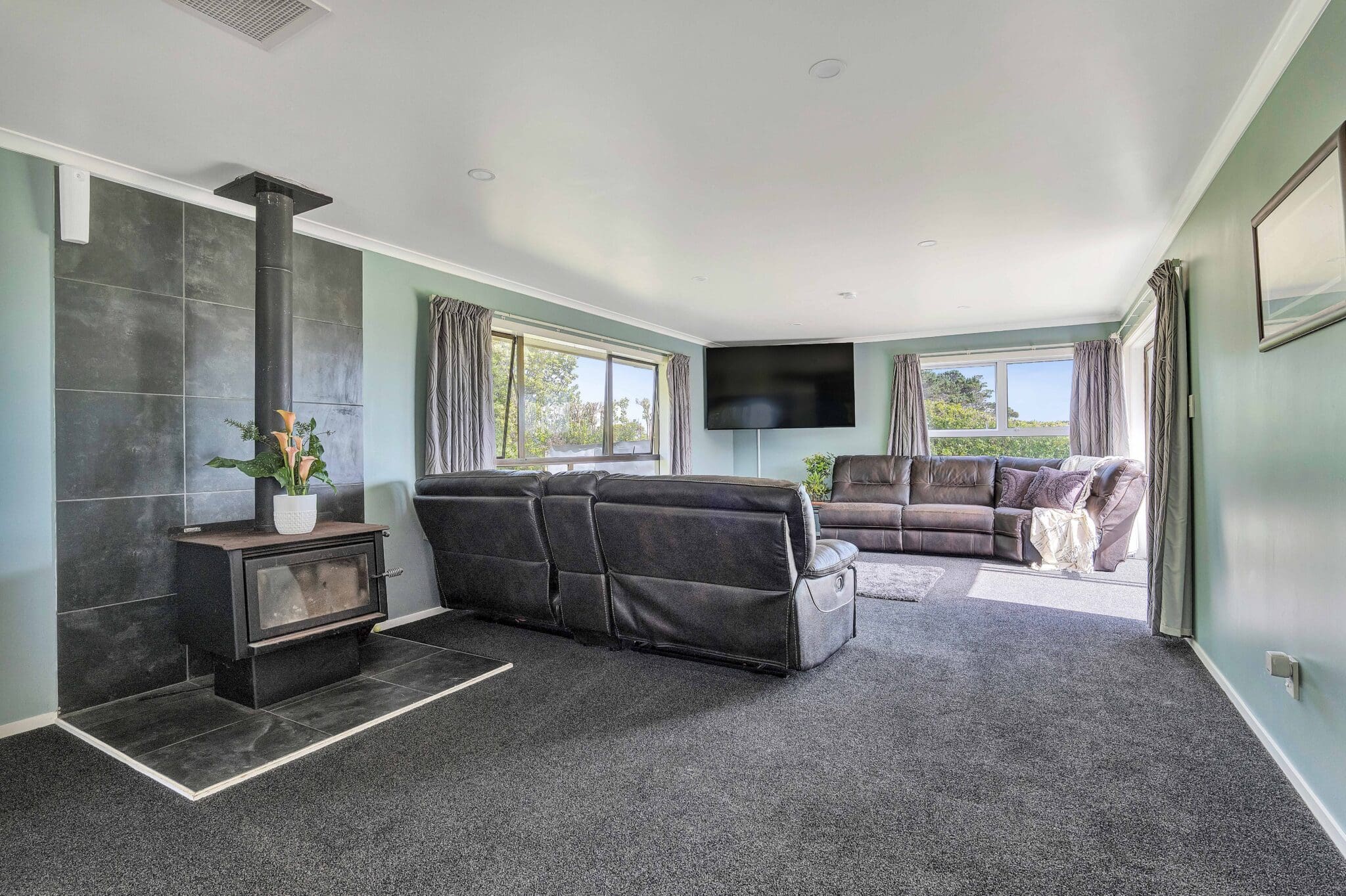 Step inside the three-bedroom home to a modern kitchen with open-plan dining and living, flowing seamlessly out to a sun-filled patio with epic mountain views, perfect for outdoor entertaining. The home features three double bedrooms, a family bathroom with bath and shower, and a separate toilet and laundry, making everyday living a breeze. Heating is by way of log fire and heat transfer system.