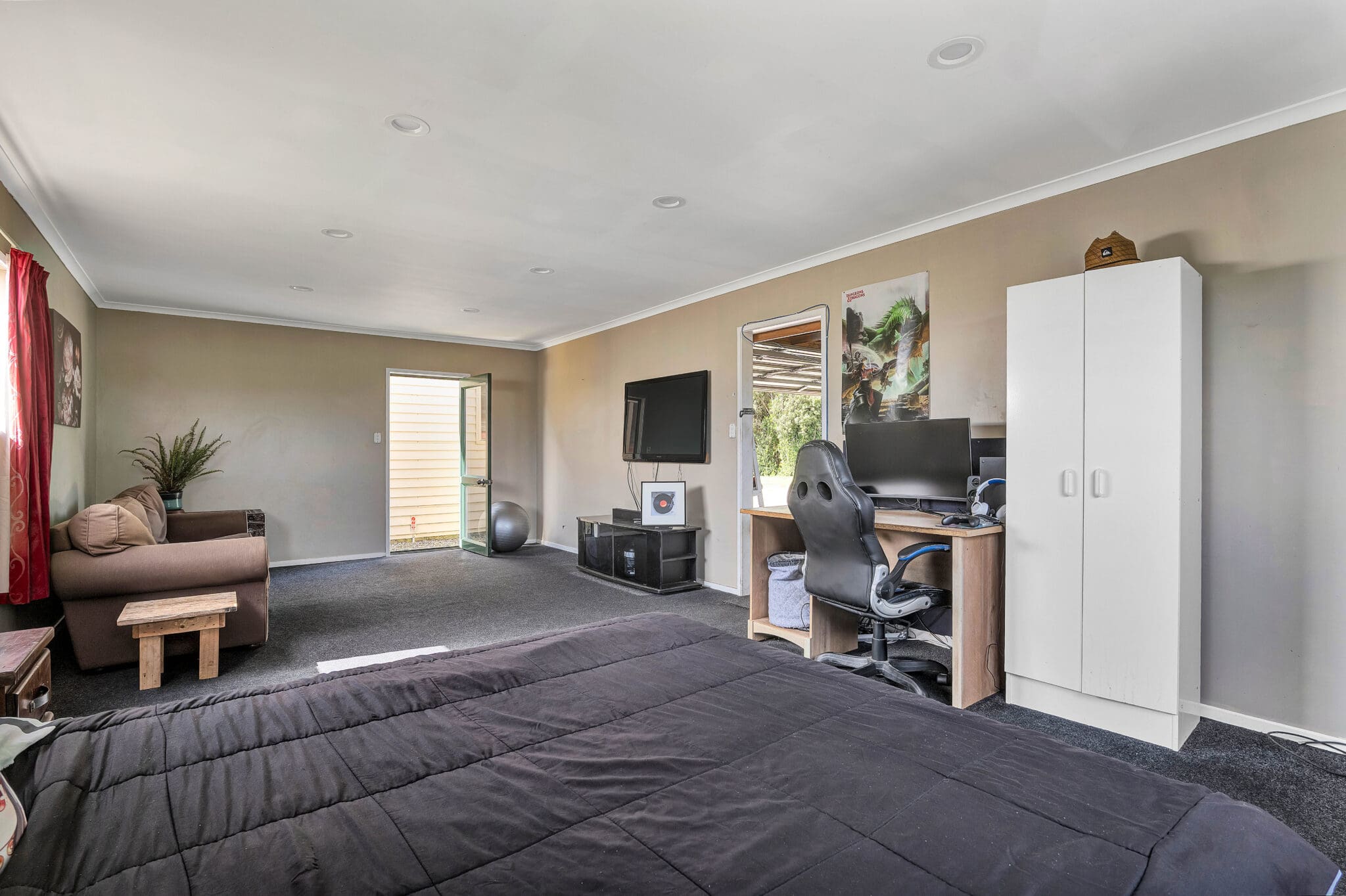 An attached garage offers the added bonus of a rumpus room, currently utilised as a fourth bedroom—ideal for teenagers, guests, or a hobby space. Adding further appeal is a triple garage/workshop, with one bay set up as a Man Shed, complete with a ranch slider opening onto a deck—perfect for entertaining on those hazy summer evenings. A carport and small three-bay implement shed provides additional space for storage.