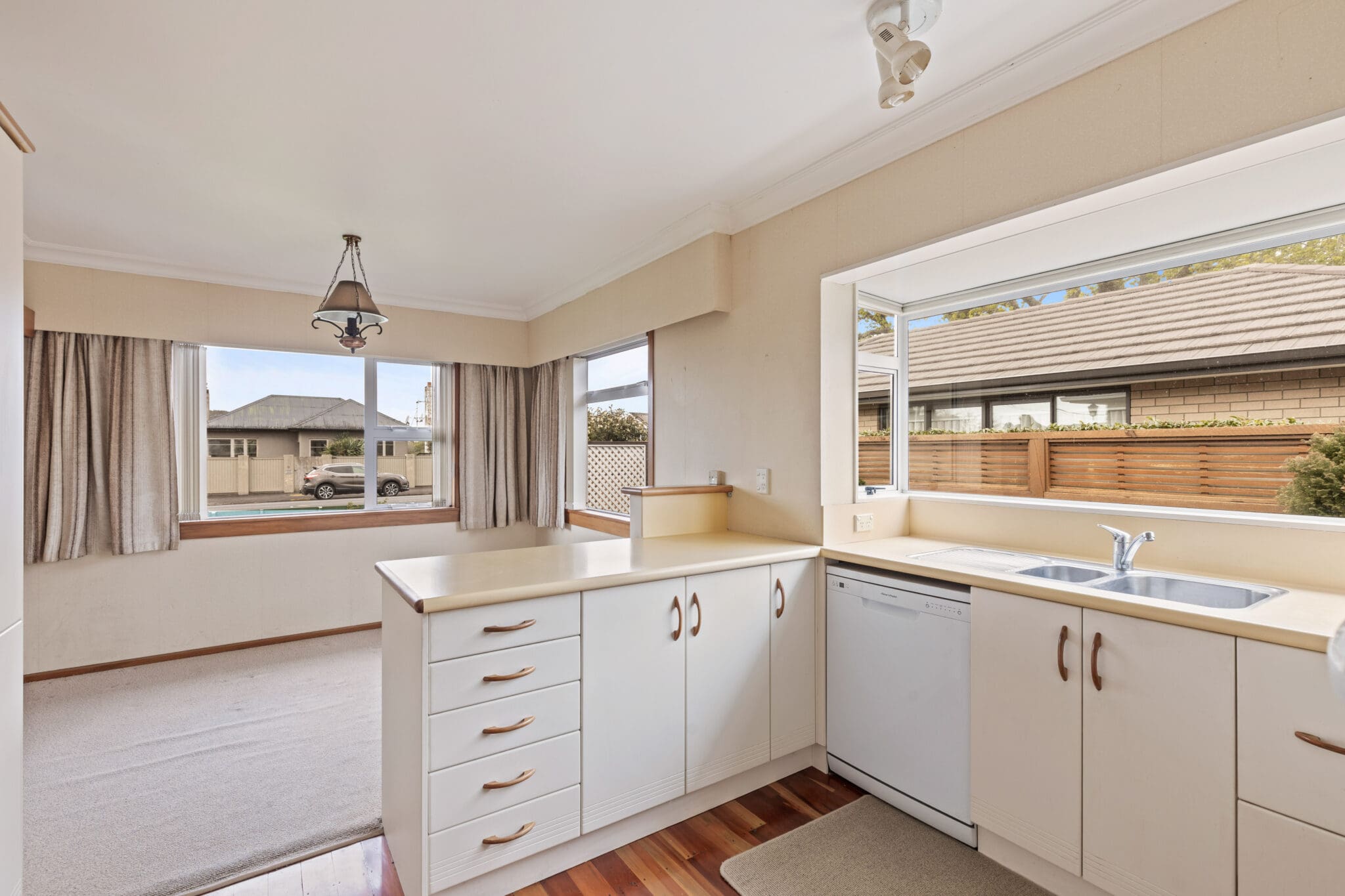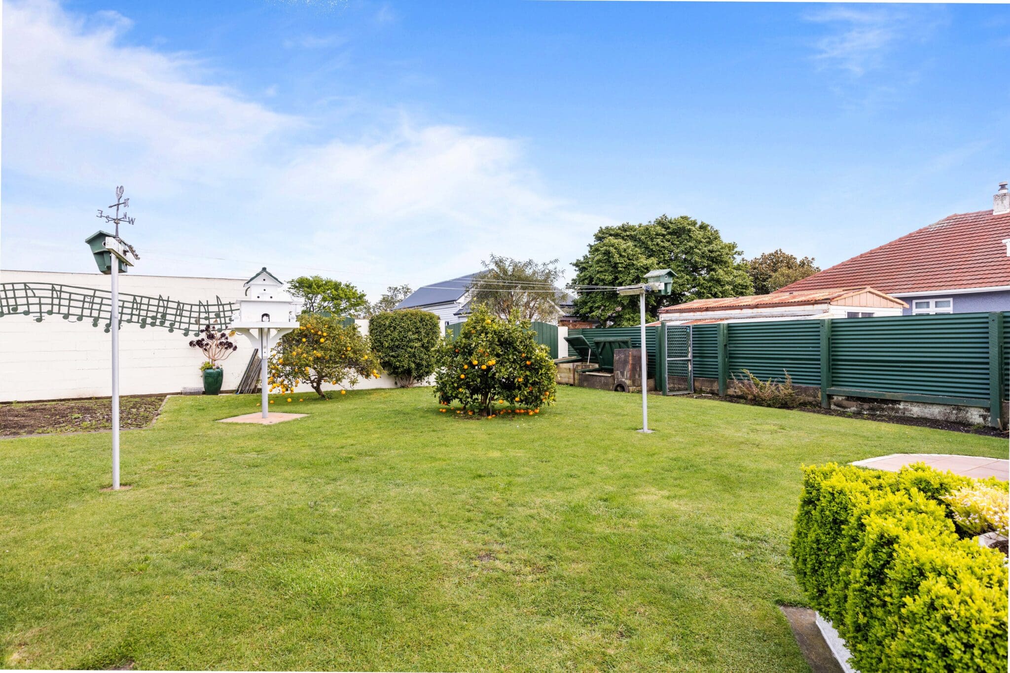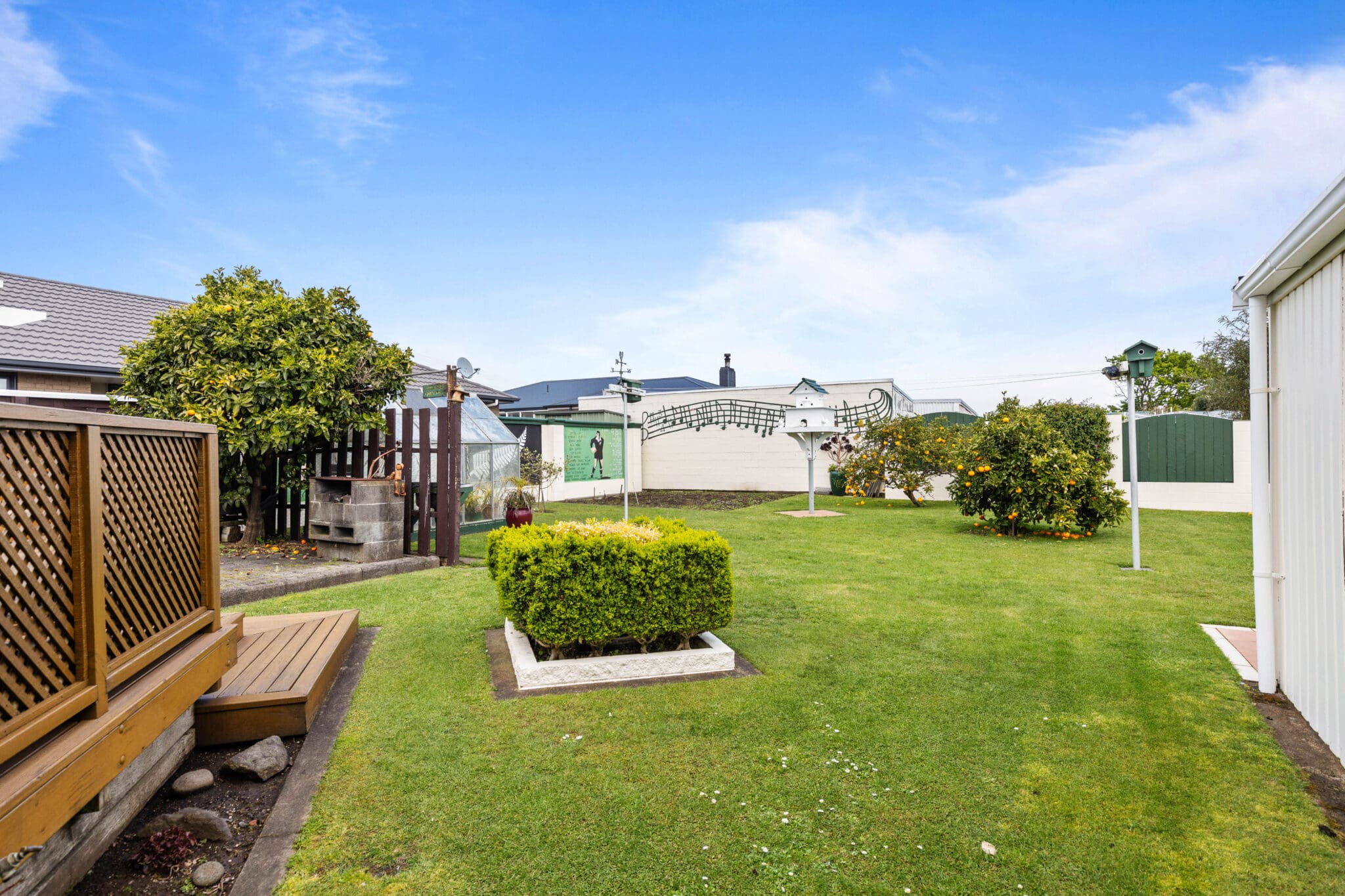 The fully fenced, flat backyard is perfect secure haven for children and pets alike. A small workshop sits at the rear of the covered carport, offering a handy space for projects, while the garden features fruit trees and a glasshouse for those with a green thumb. The extra-long carport, complete with a door, provides added security for your vehicles.