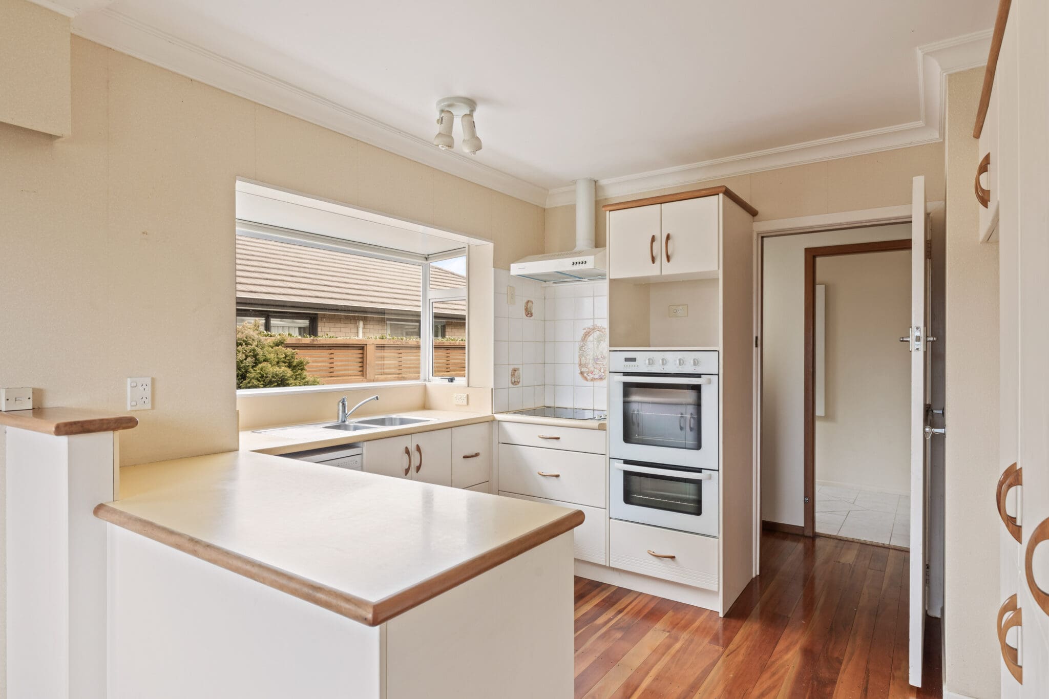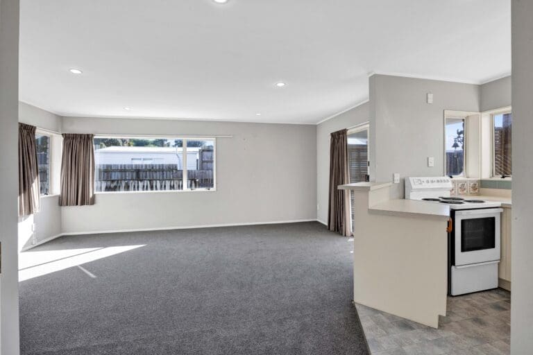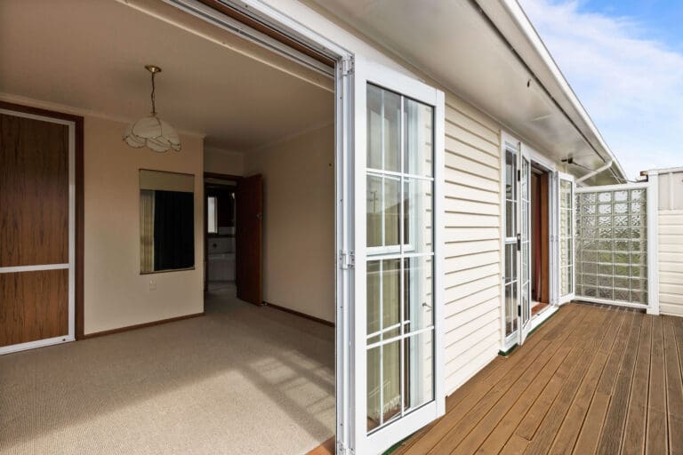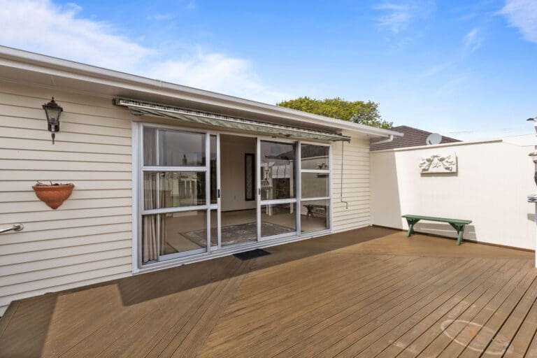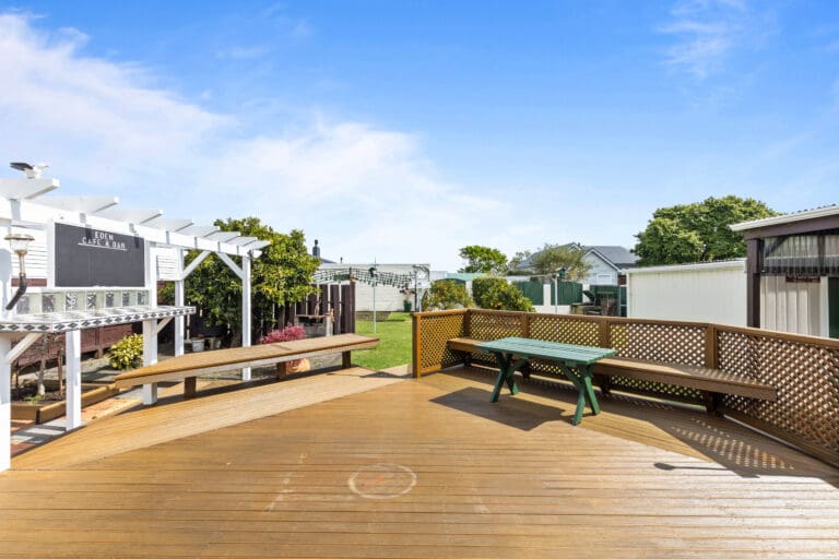 This weatherboard home offers a flexible layout, perfect for family living. The open-plan kitchen flows seamlessly into the dining area and through to the lounge. The home offers two double bedrooms, each opening onto the veranda and a smaller single bedroom that doubles as a home office, it’s perfect for those working from home. There’s also a well-appointed family bathroom, ensuring convenience for everyone. An additional bonus is a large room at the back of the house offering endless possibilities – whether you’re seeking additional living space, a playroom, or a hobby area. This room extends seamlessly to the generous sun-drenched deck perfect for entertaining.