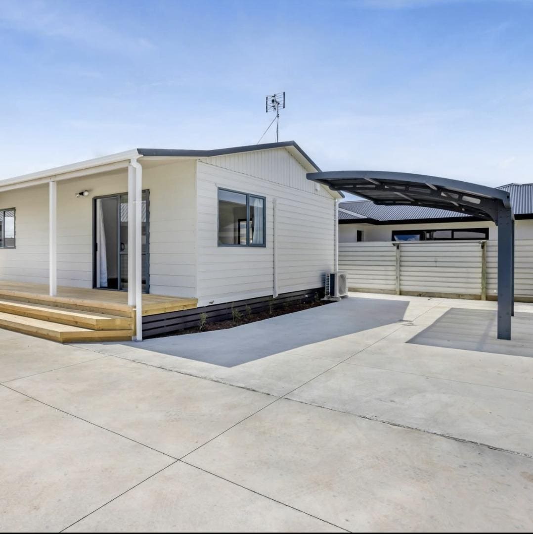 This property offers modern comforts and a fresh clean interior. Located down a long, private driveway, it provides peace and privacy while still being close to the heart of Hawera. Two bedrooms, one bathroom. Heat pump, low maintenance section.