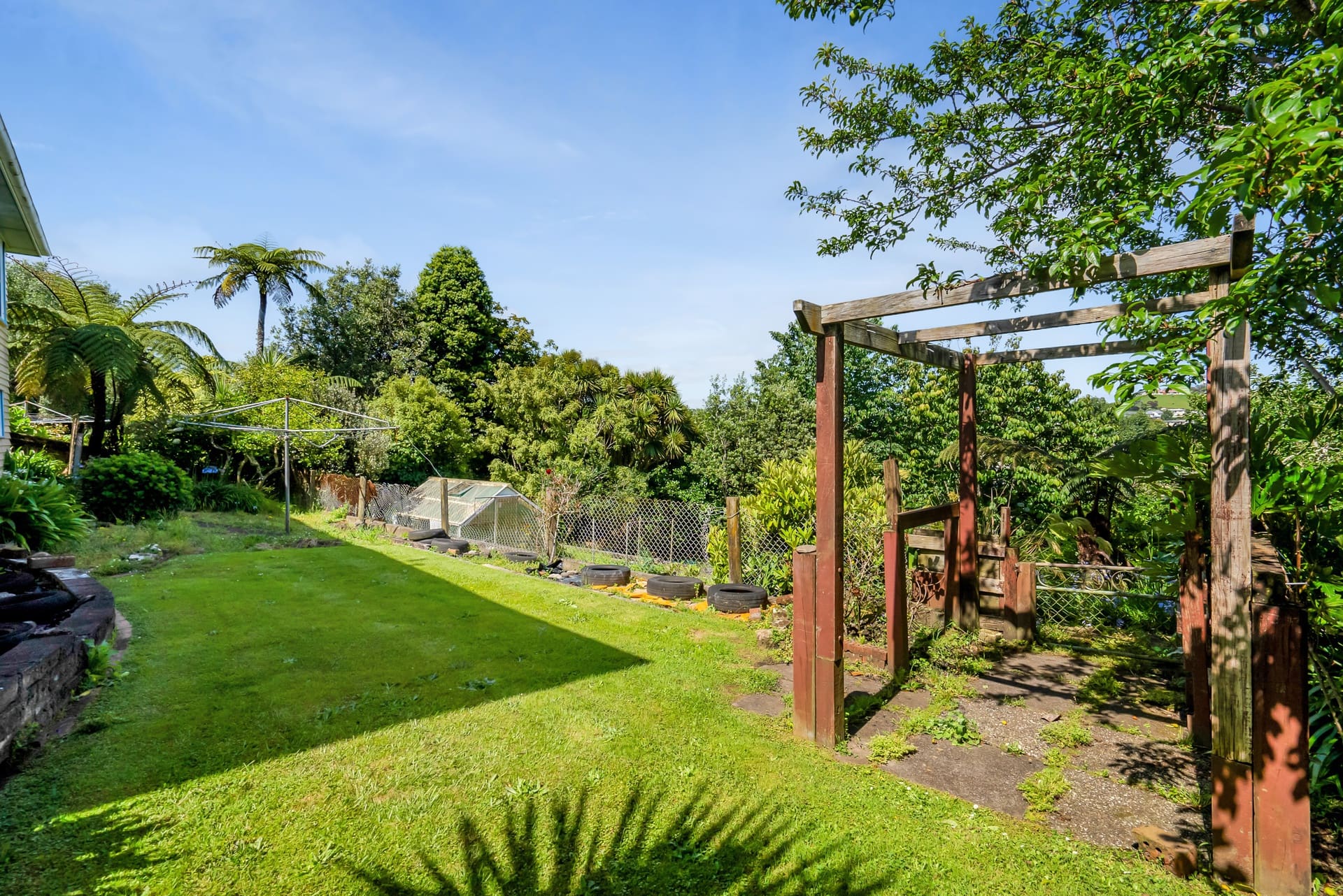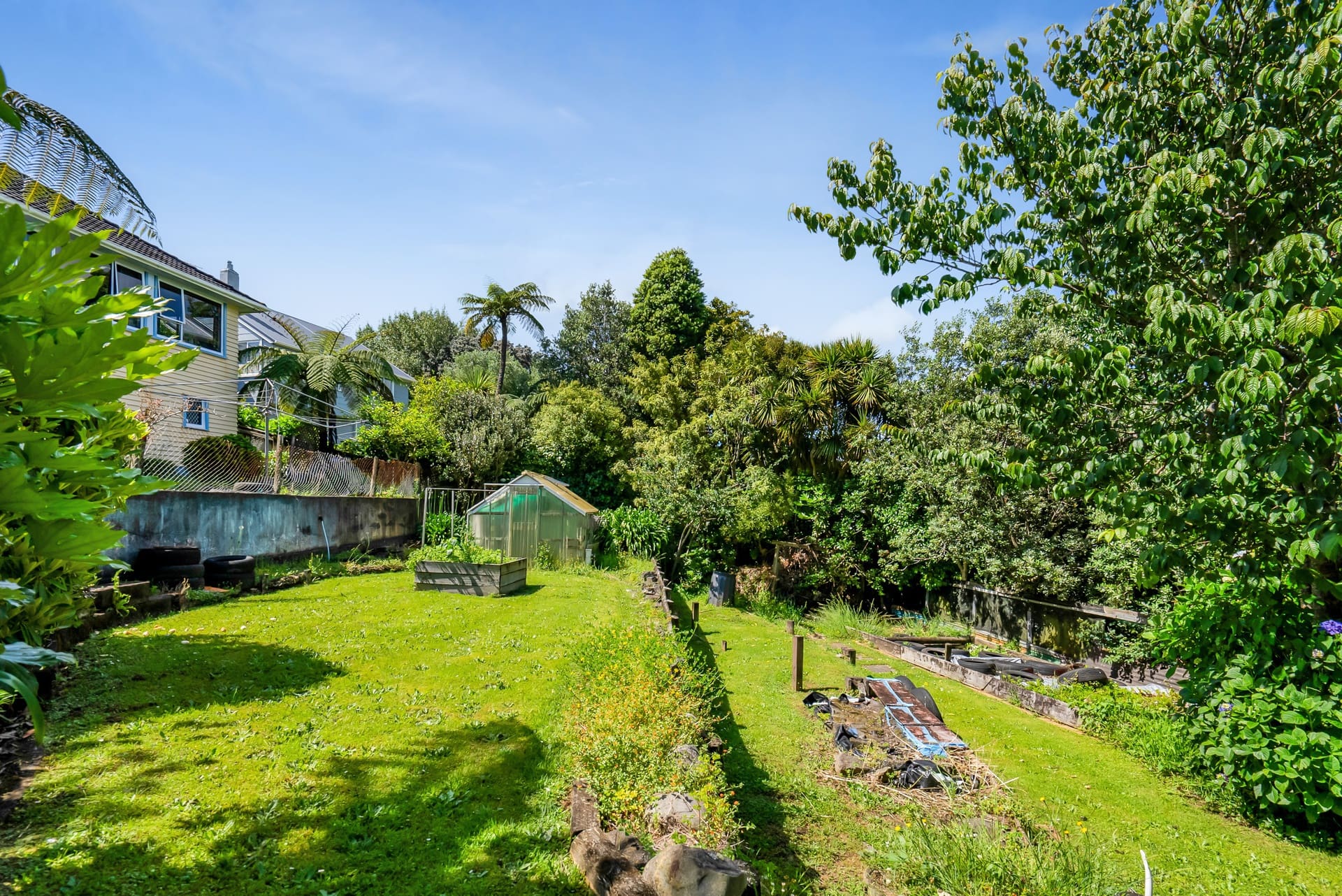 Step outside and let your creativity run wild! The expansive 918m2 section features tiered gardens, water access, and flourishing fruit trees – perfect for those with a green thumb. Take in the elevated backyard views and enjoy the tranquility this space offers.