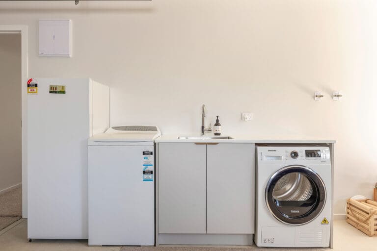 The open-plan living flows effortlessly to the covered outdoor area. This additional area extends the home’s versatility, offering an extra spot to entertain, or simply relax and unwind. A fully insulated double garage, complete with a well-equipped laundry, provides secure internal access, ensuring both convenience and comfort.