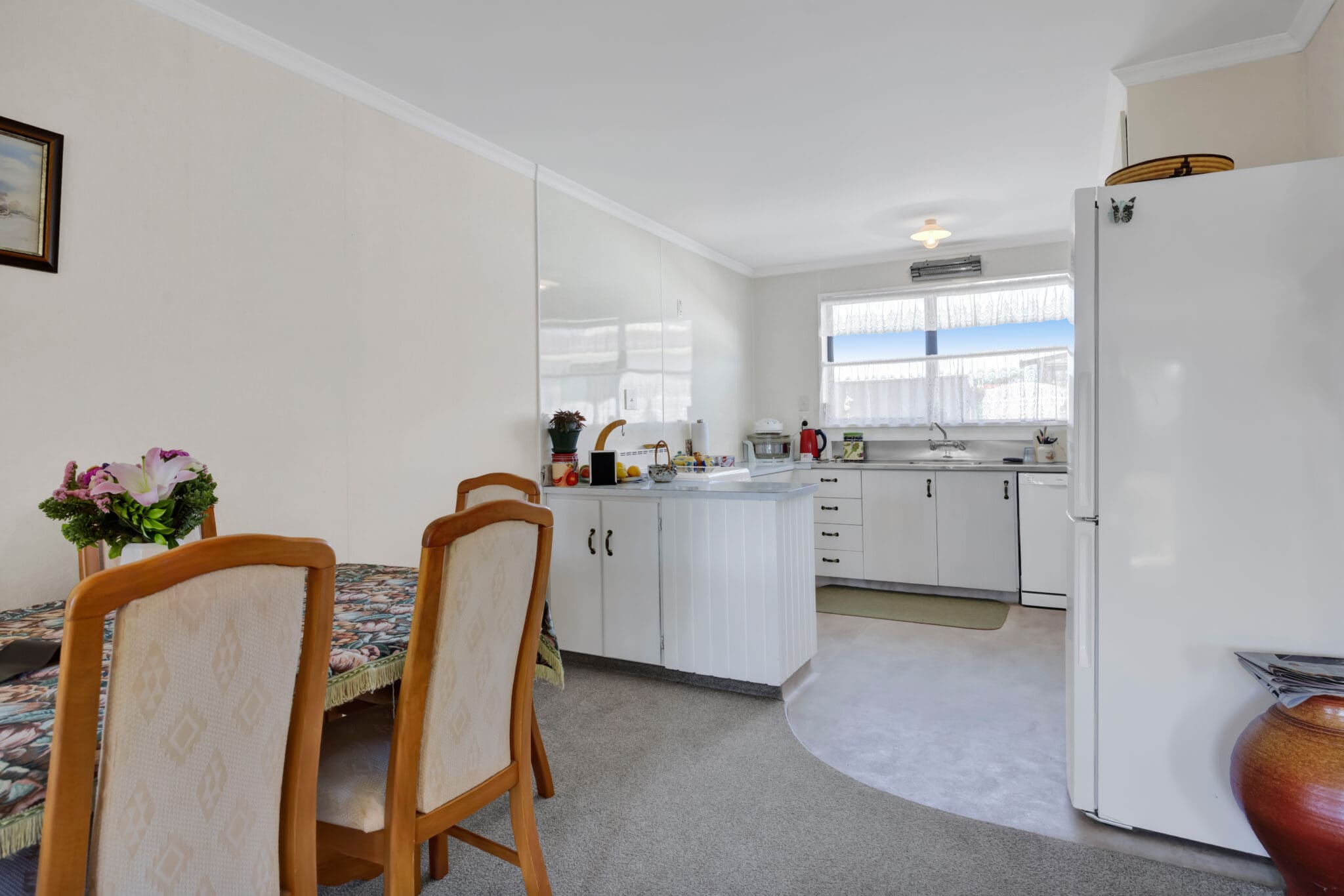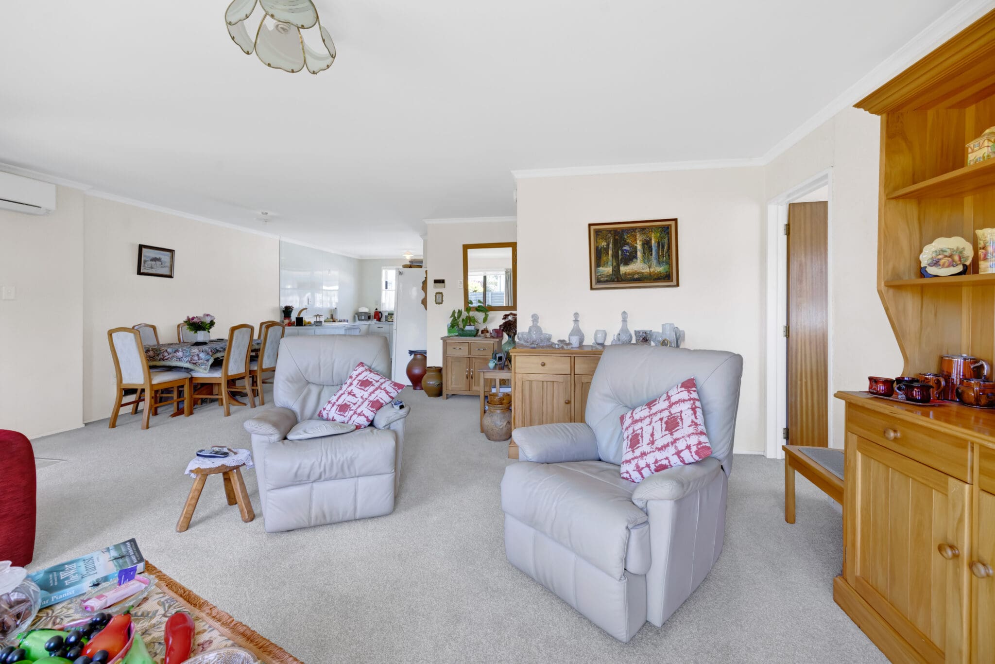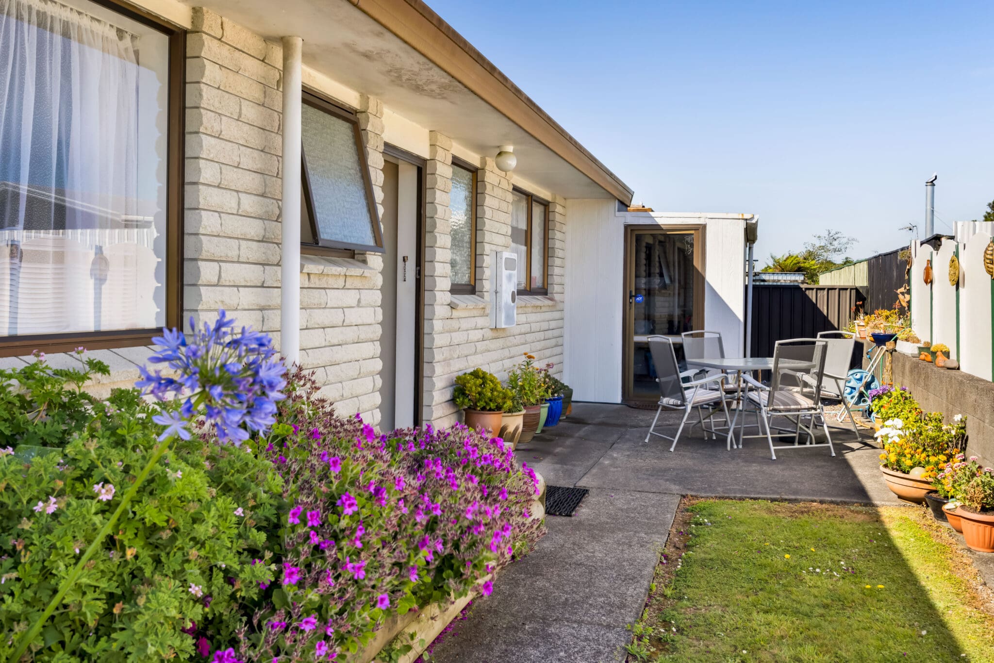 Inside, the modern layout features two well-proportioned bedrooms, a light-filled living area and a tidy kitchen and bathroom, all presented in excellent condition. A heat pump ensures warmth and comfort during the cooler winter days, making the home inviting all year-round.