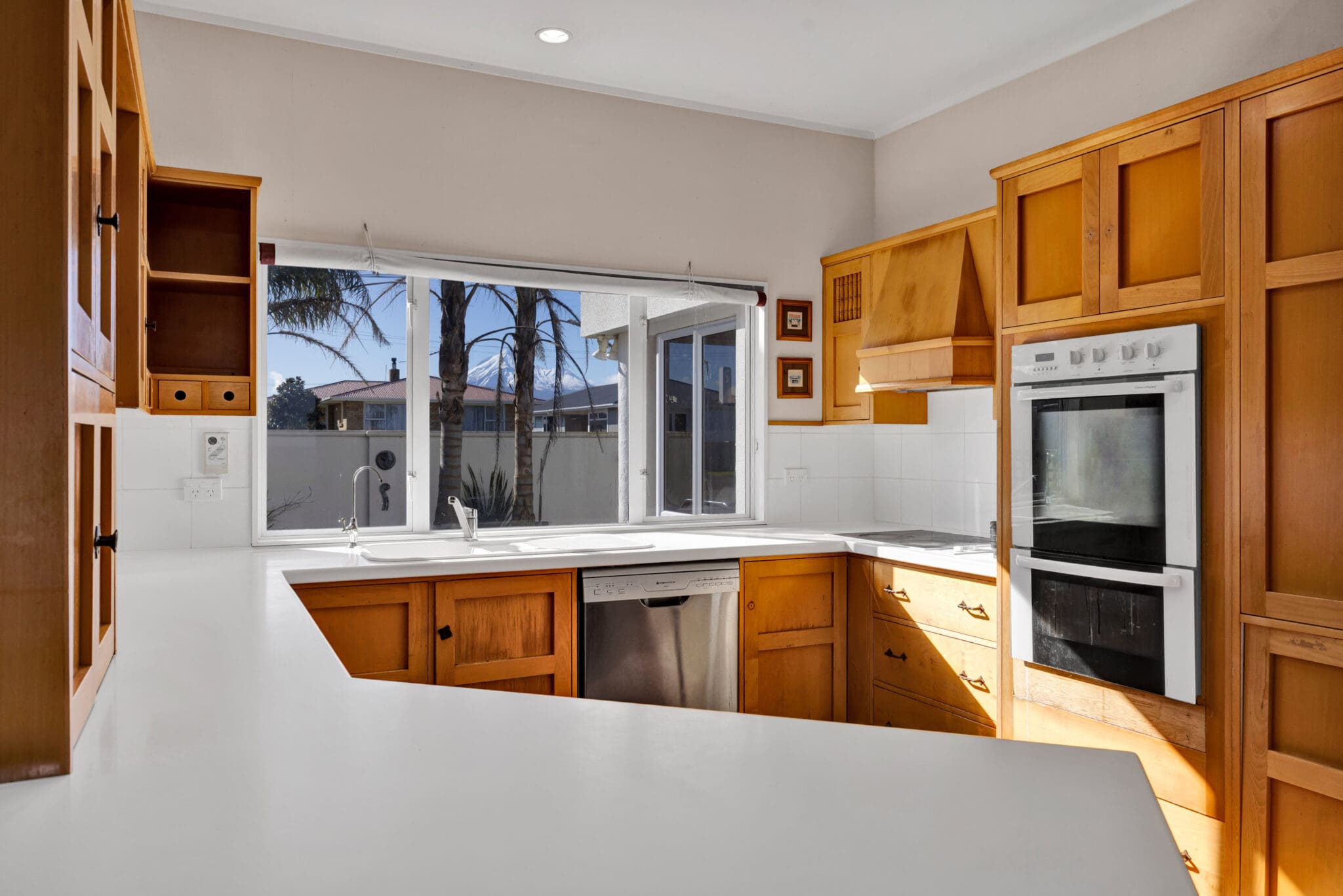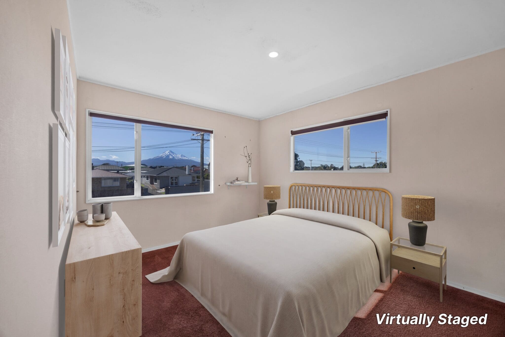Three large bedrooms, two bathrooms, a tidy kitchen with a gorgeous view of Mt Taranaki; ample storage – even the laundry has a view of the ocean! Double garage with internal access and a large grand entrance with high ceilings ensuring the whole property is filled with natural light.