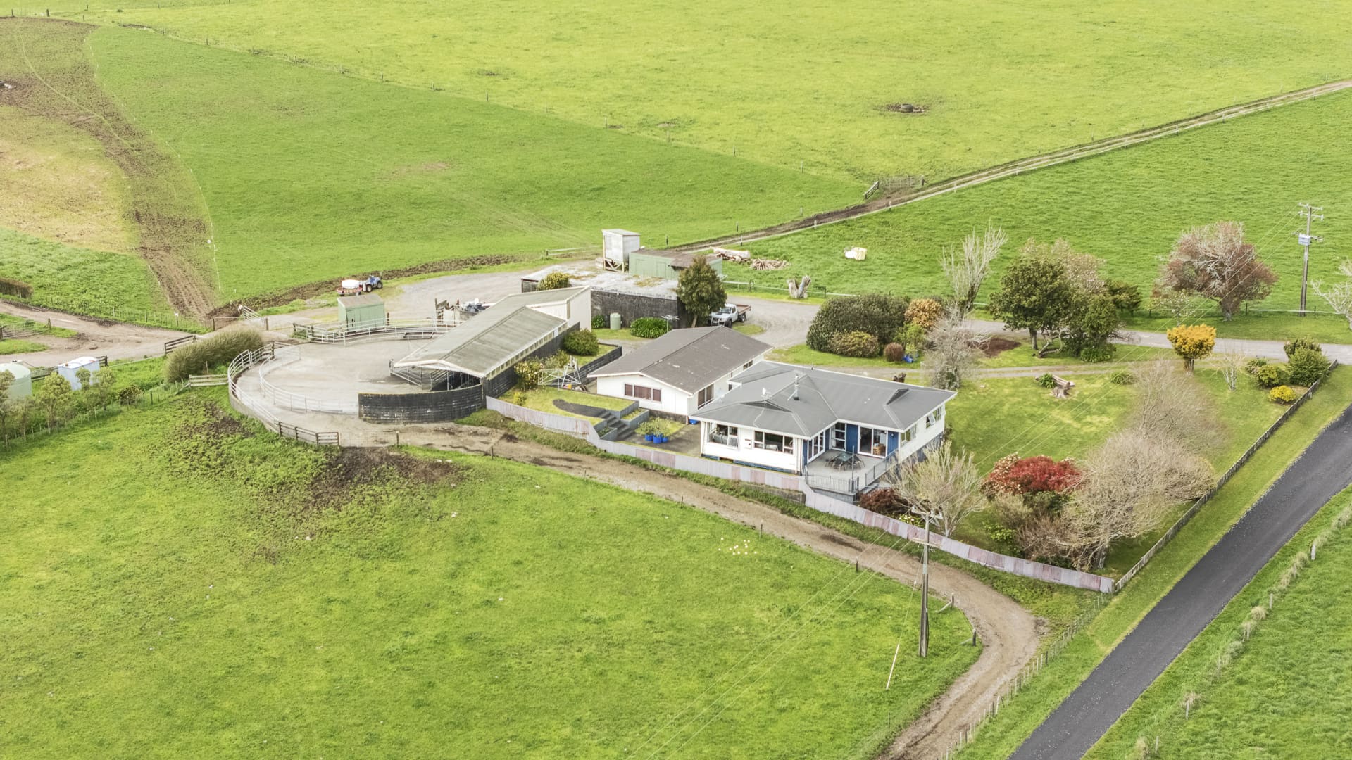Conveniently close to the cowshed is a four bedroom, open plan family home, with a separate double garage that has a large rumpus room attached.