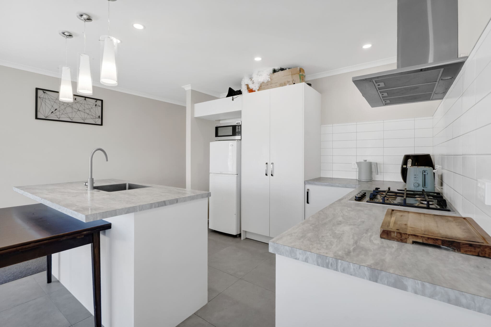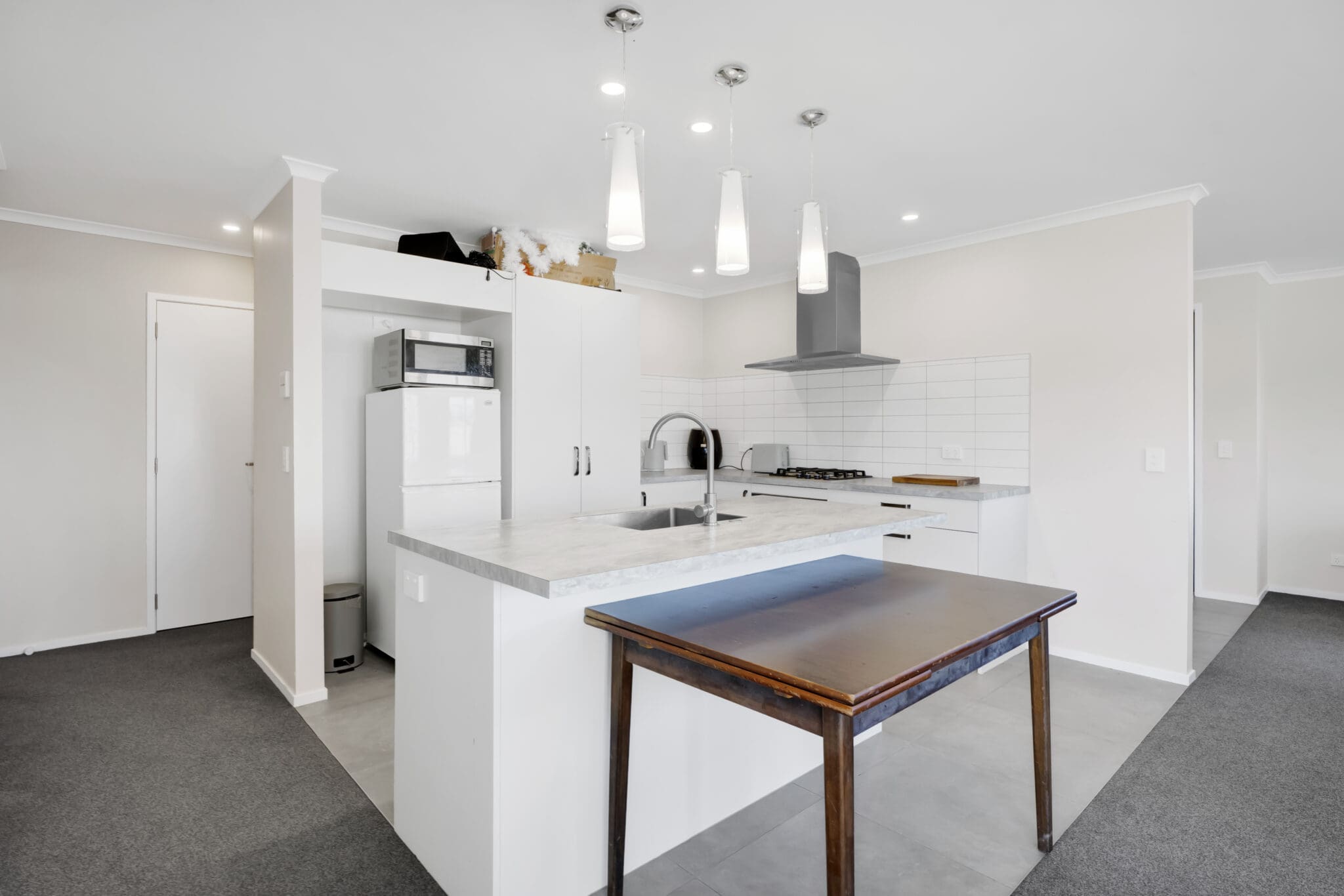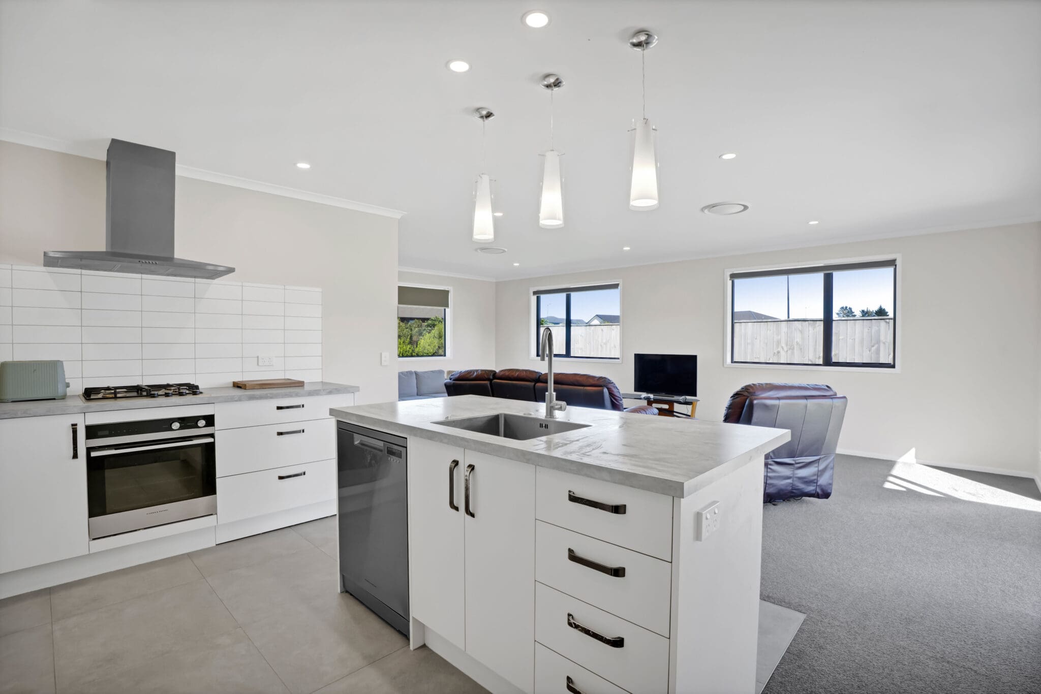 The heart of the home is the open plan living area, where the kitchen, dining, and lounge come together effortlessly. It’s a space made for connection — whether it’s busy family mornings, relaxed evenings, or hosting friends. Natural light pours in, enhancing the modern finishes and creating an easy, comfortable flow throughout.
