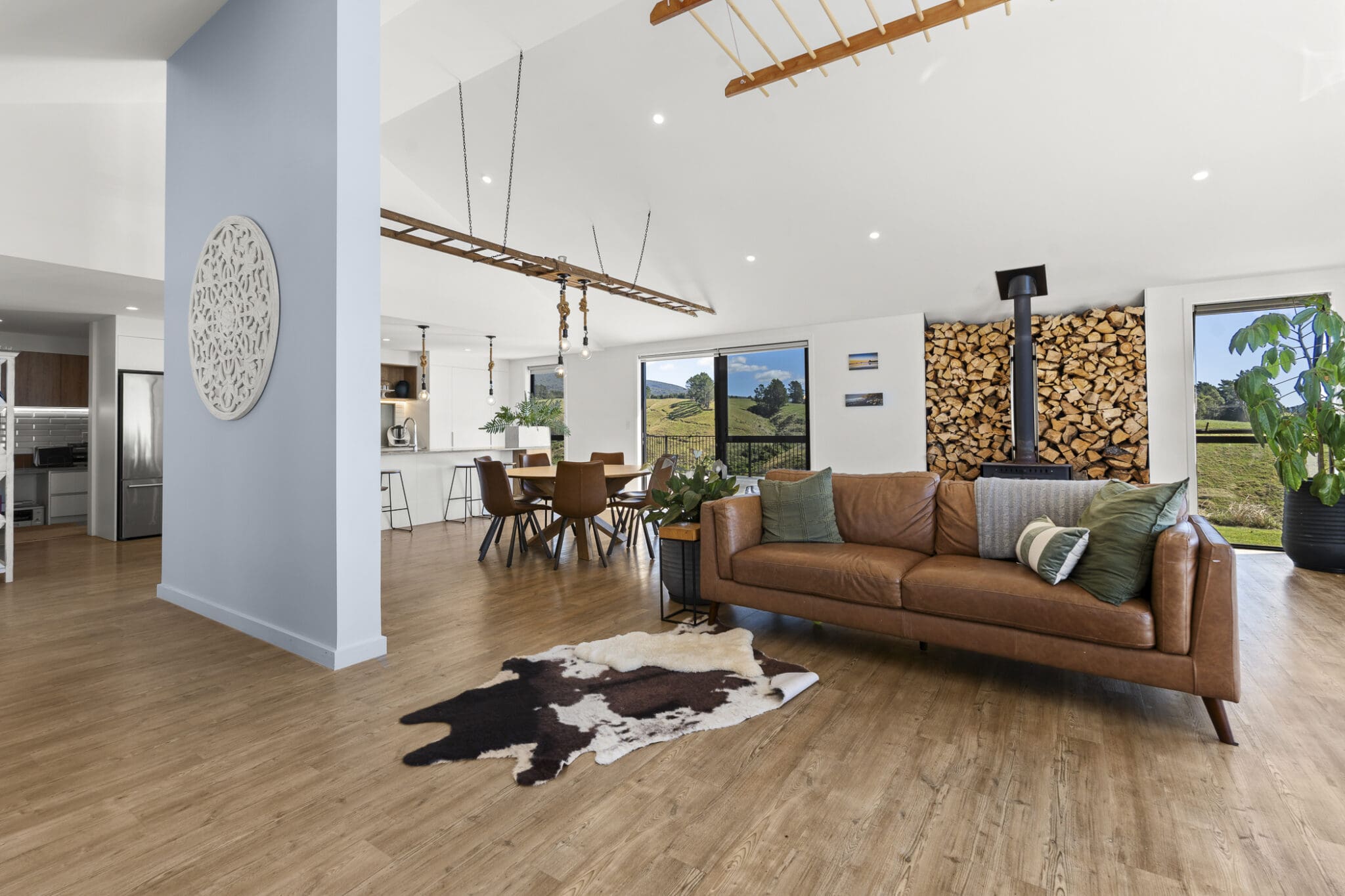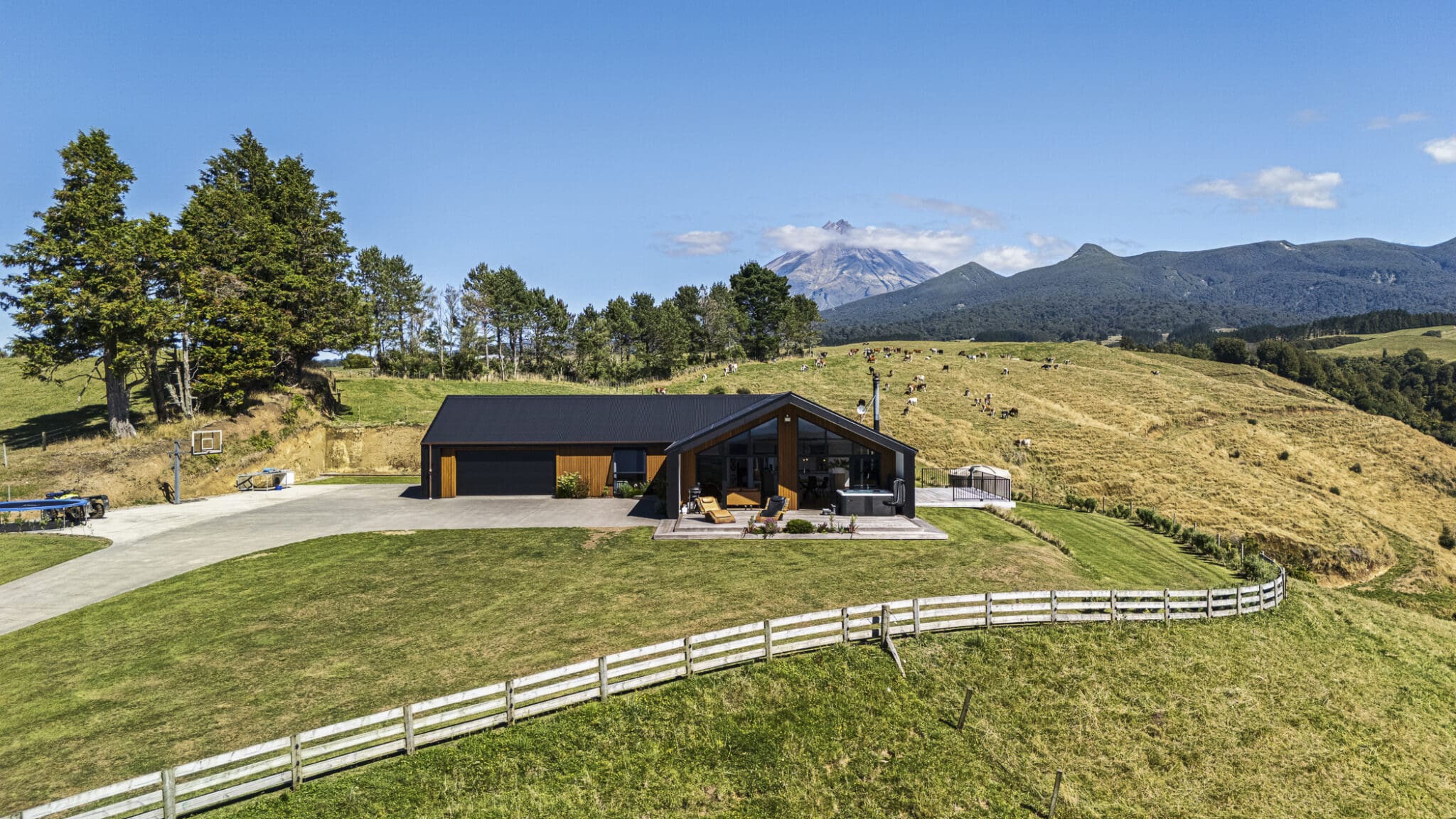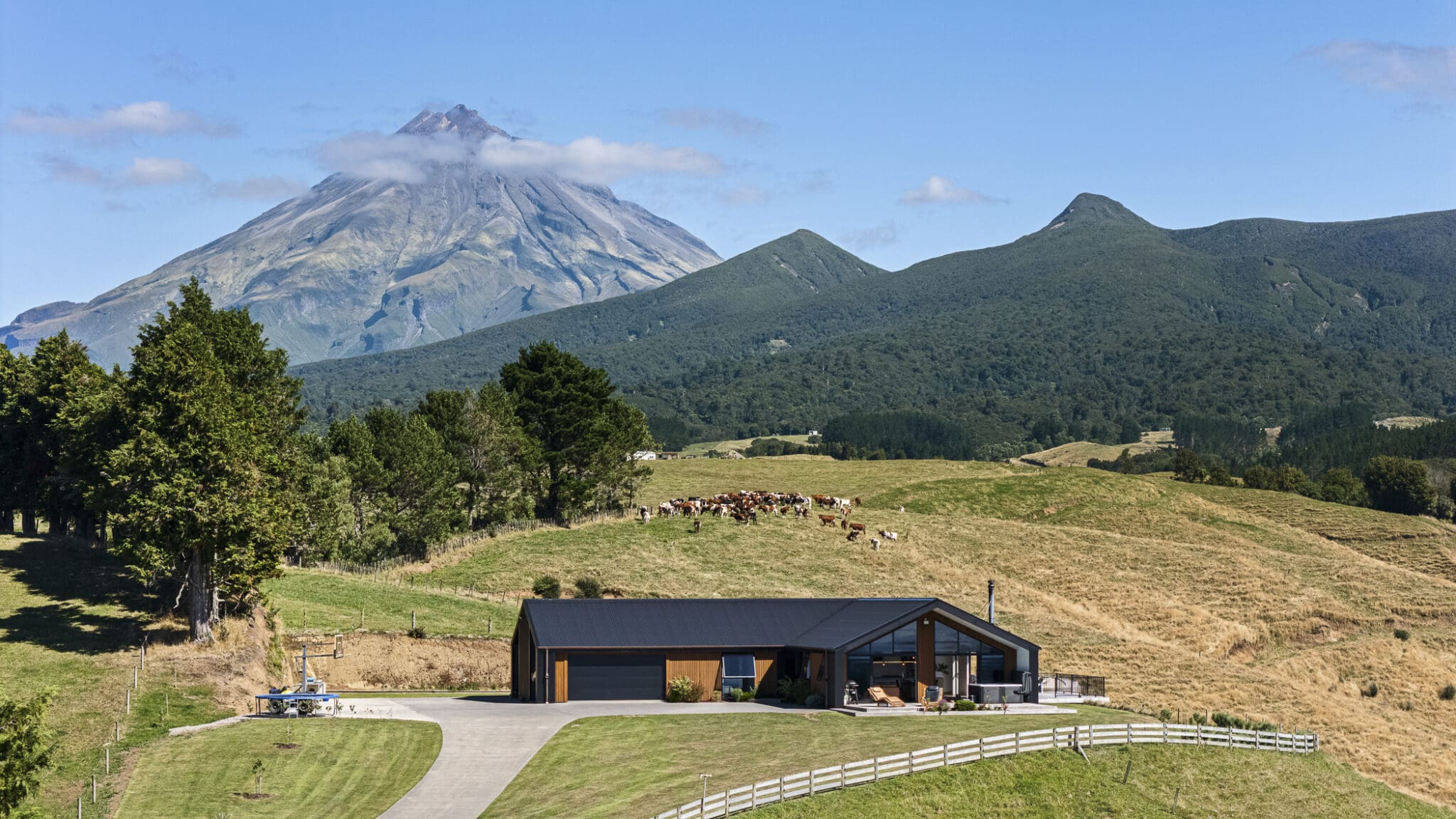 Overlooking the valley below, “simply stunning” accurately describes this outstanding property, just 15 minutes from the centre of New Plymouth. Nestled up a long driveway in a private and relaxed setting, the north facing home sits proud on 16.64 hectares (41.1 acres) of land with the mountain tucked in behind the property has panoramic sea views extending across the farmland below to New Plymouth’s port and up to Raglan on a clear day.