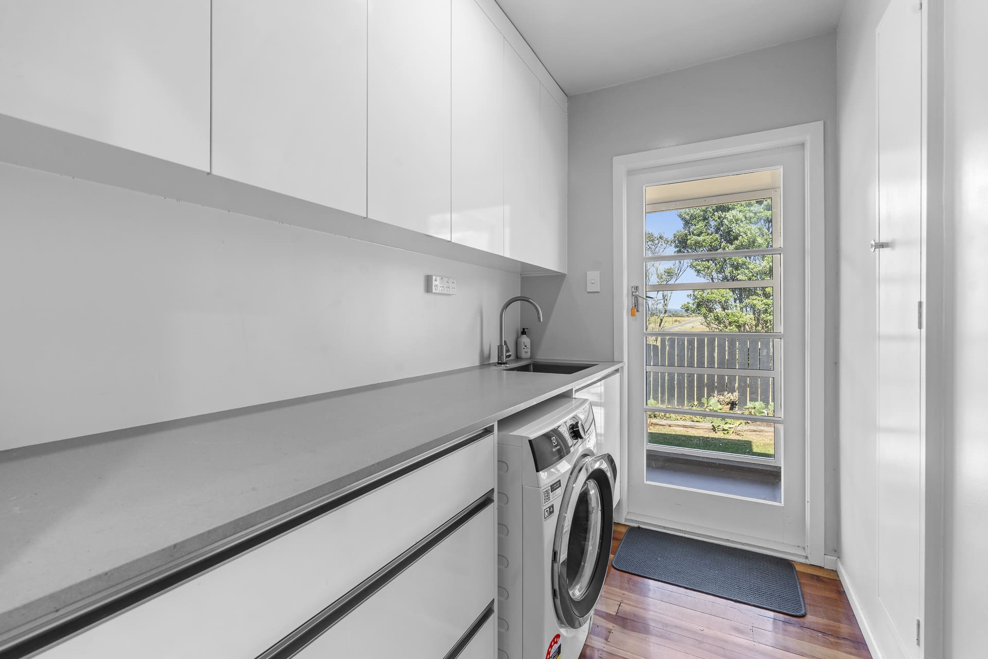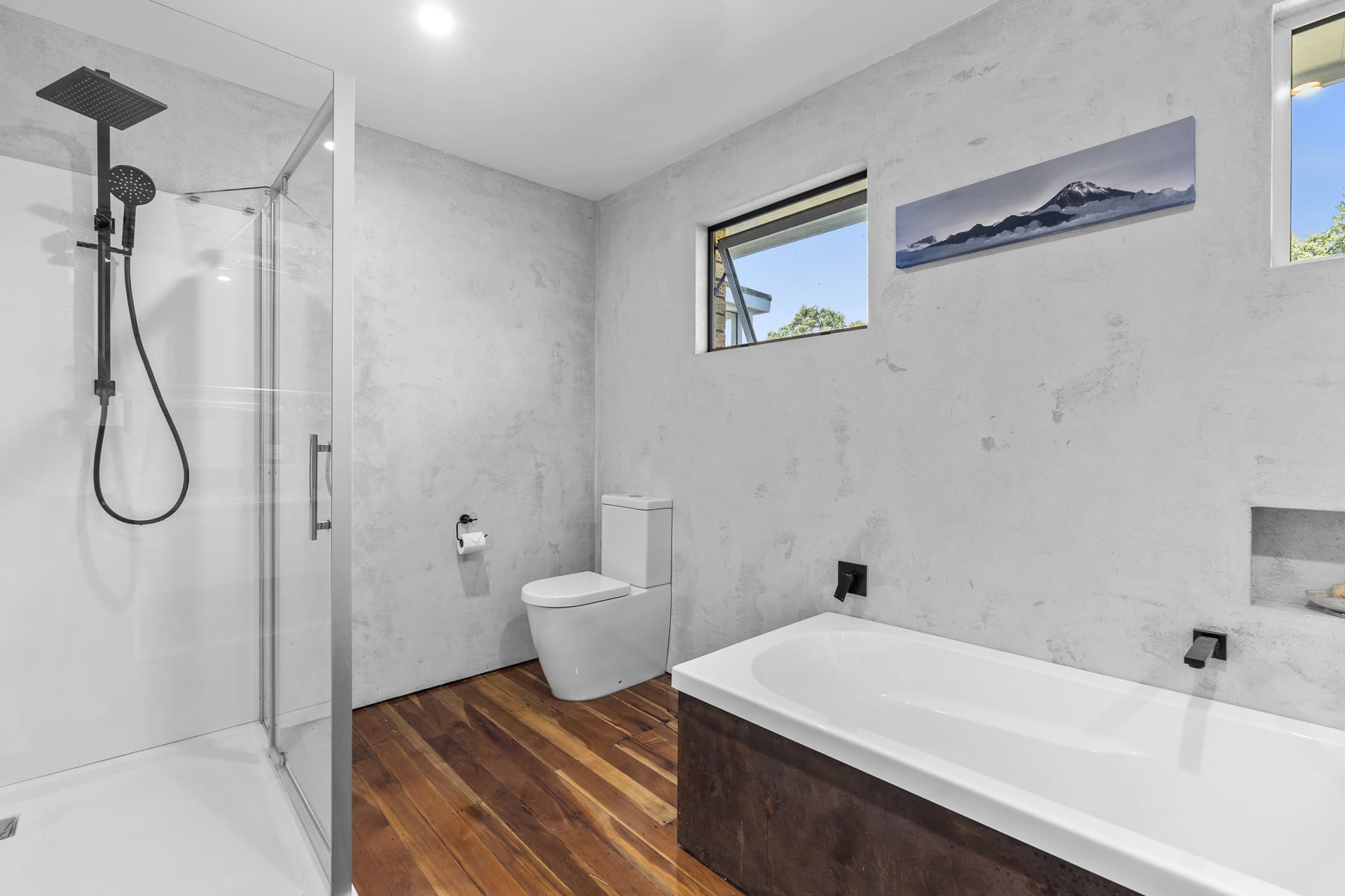Warm matai flooring enhances the appeal, while comfort is assured with a log fire and retrofitted double glazing. The new concrete drive and a modernized plaster finish have added a fresh look to the front of the home.
