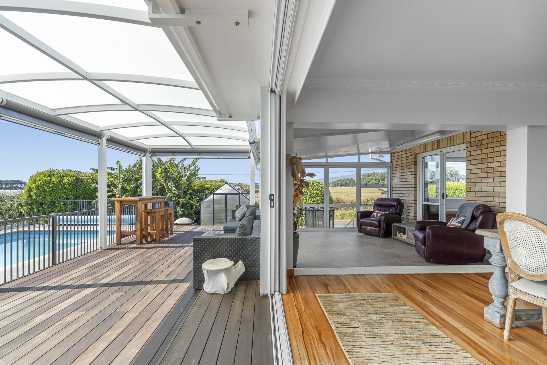The land is equally impressive with an established orchard (over 30 trees), citrus grove, avocados and bananas. The NZ Gardenz Greenhouse and vege garden supports, encourages and allows enjoyment of fresh produce all year round.