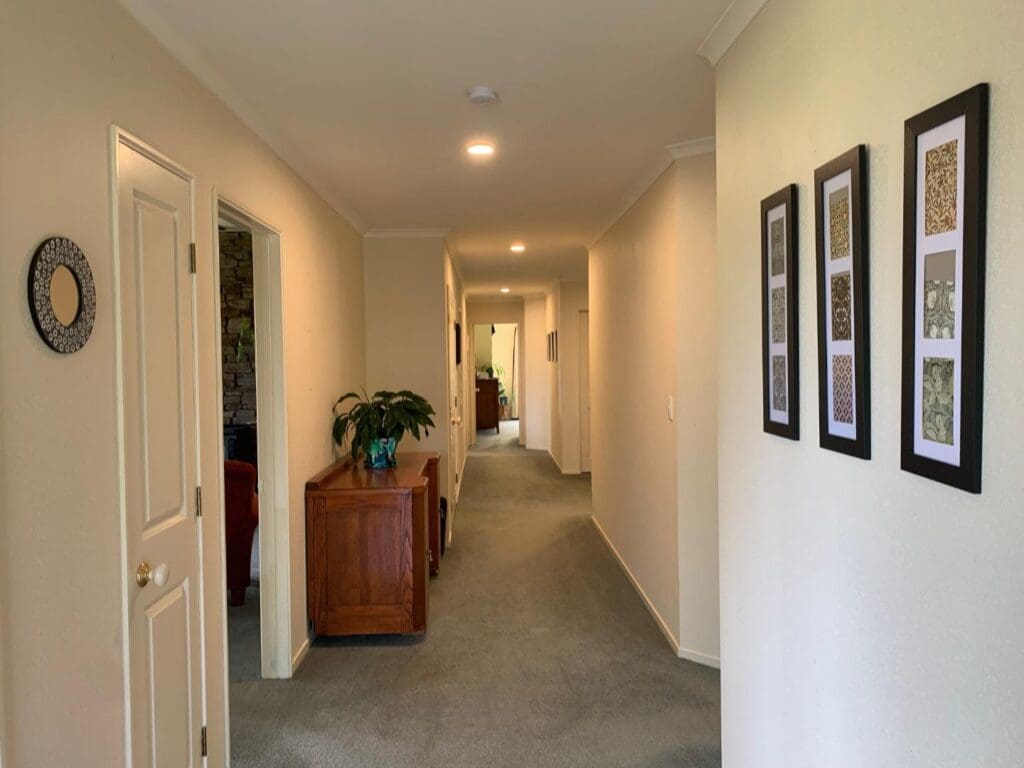 From the front door to the kitchen, you have plenty of storage throughout the house. The sunny master bedroom has an ensuite and walk-in wardrobe, second and third bedrooms are a good size with wardrobes, fourth bedroom can be set up as an office or a smaller double bedroom. The main living area is an open plan kitchen, dining and living space, with a heat pump to cool the hot summer days. Great indoor-outdoor flow from deck to kitchen, which has a rangehood, dishwasher and gas top cooking.
