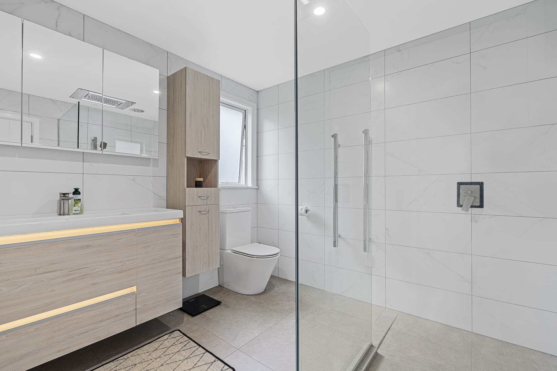 The open-plan living area is light-filled thanks to expansive glazing that frames the stunning outlook. Year-round comfort is ensured with a heat pump and HRV system.