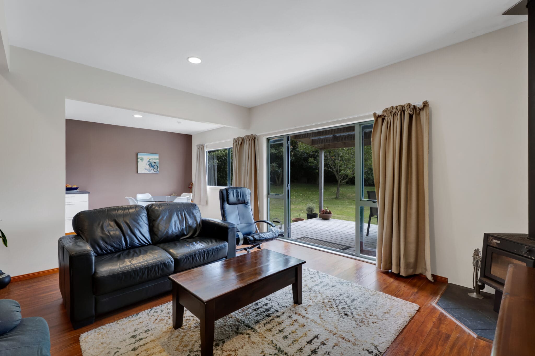 The north-facing deck is a standout feature. The perfect place to start your morning with a coffee while enjoying the stunning outlook of Mt Taranaki. Inside the property is has been thoughtfully renovated with insulation throughout and a log fire for those cooler months. Plus a brand new roof – completed March 2026.