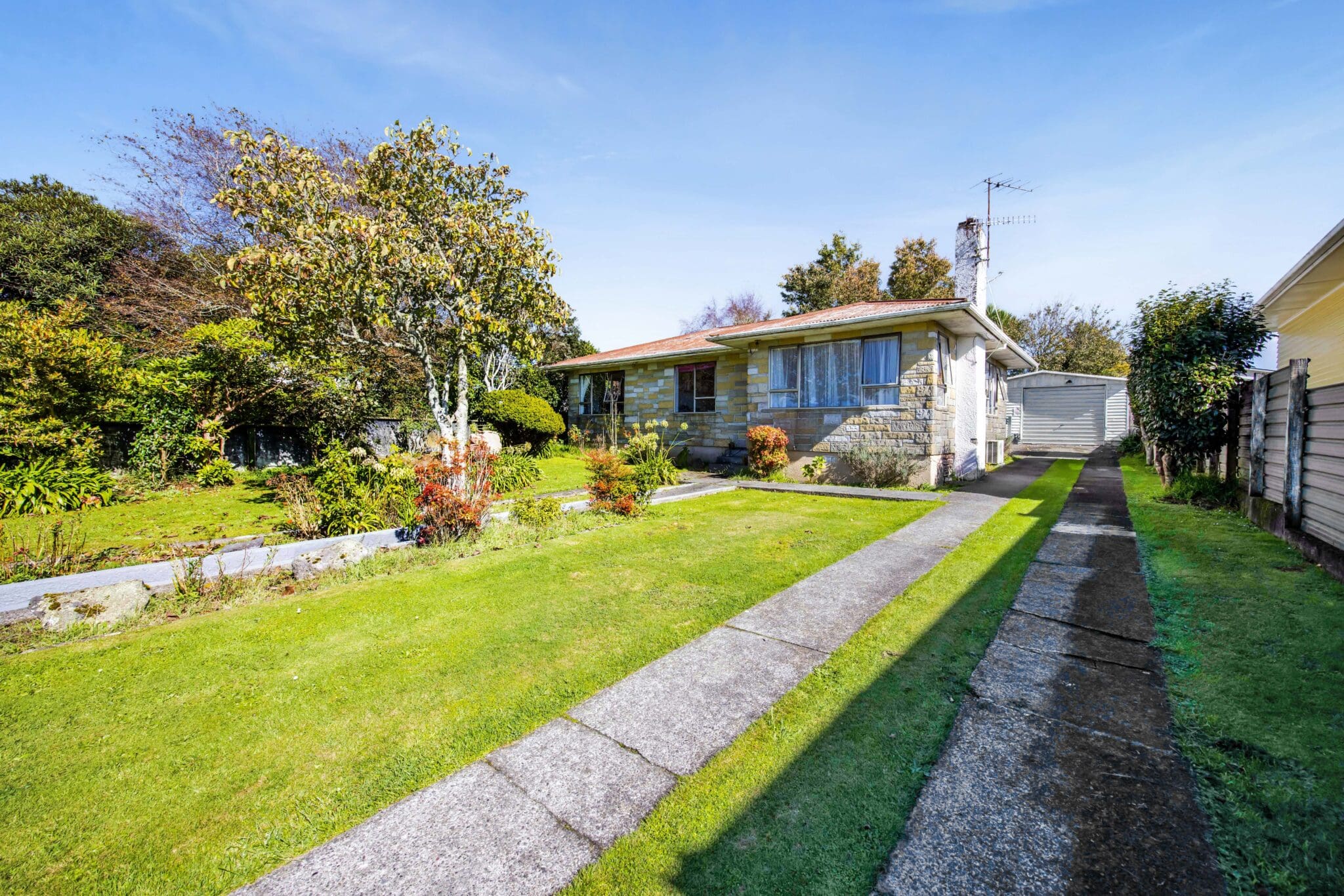 The kitchen, dining, and living area offers a functional space that has potential to be modernised to boost rental appeal or increase future resale value. The garaging and woodshed add extra storage options, while the expansive backyard is ideal for tenants, families, or further landscaping.