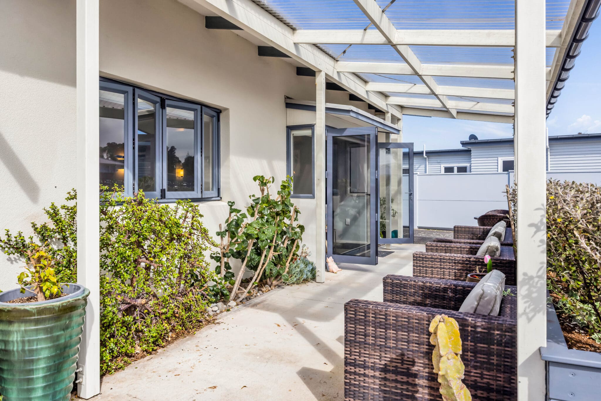 Excellent indoor/outdoor flow from the lounge out to the outdoor patio, mornings will be well spent in full sun and a good brew. Features include four heatpumps, two ensuites plus a main bathroom, excess storage, aluminum roof, complete with a modern, sleek kitchen and stylish decor.
