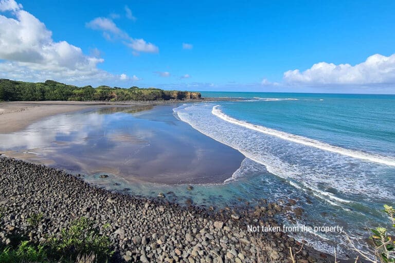The property’s exterior presents a blank canvas for your landscaping dreams, allowing you to create your own oasis. Enjoy the calming presence of the nearby Otahi Stream, perfect for leisurely strolls along the walkway, fishing at the river mouth or continue along the track to Middleton Bay nearby. Take advantage of the large grass reserve just below the property – ideal for family picnics or exercising the dog.