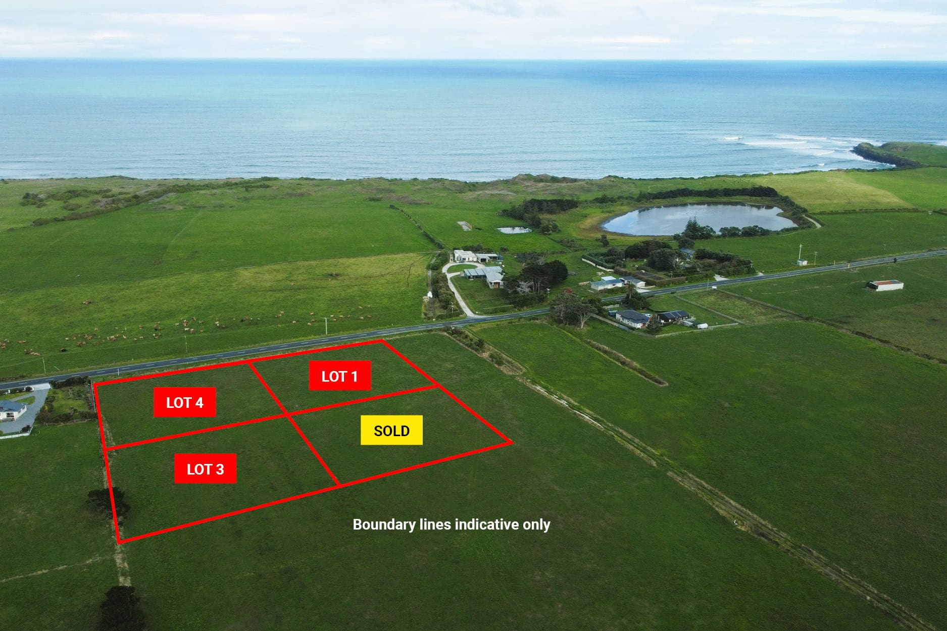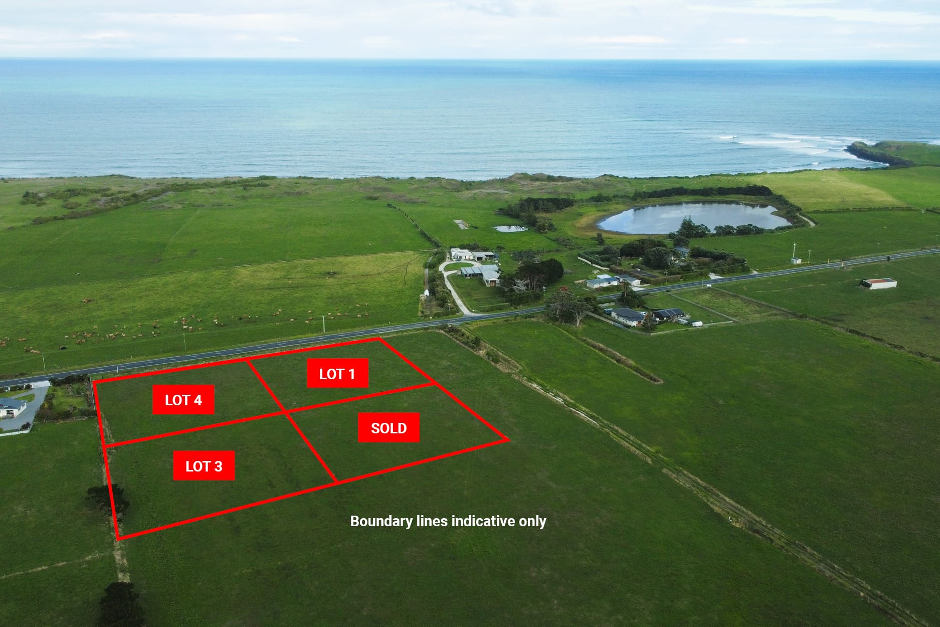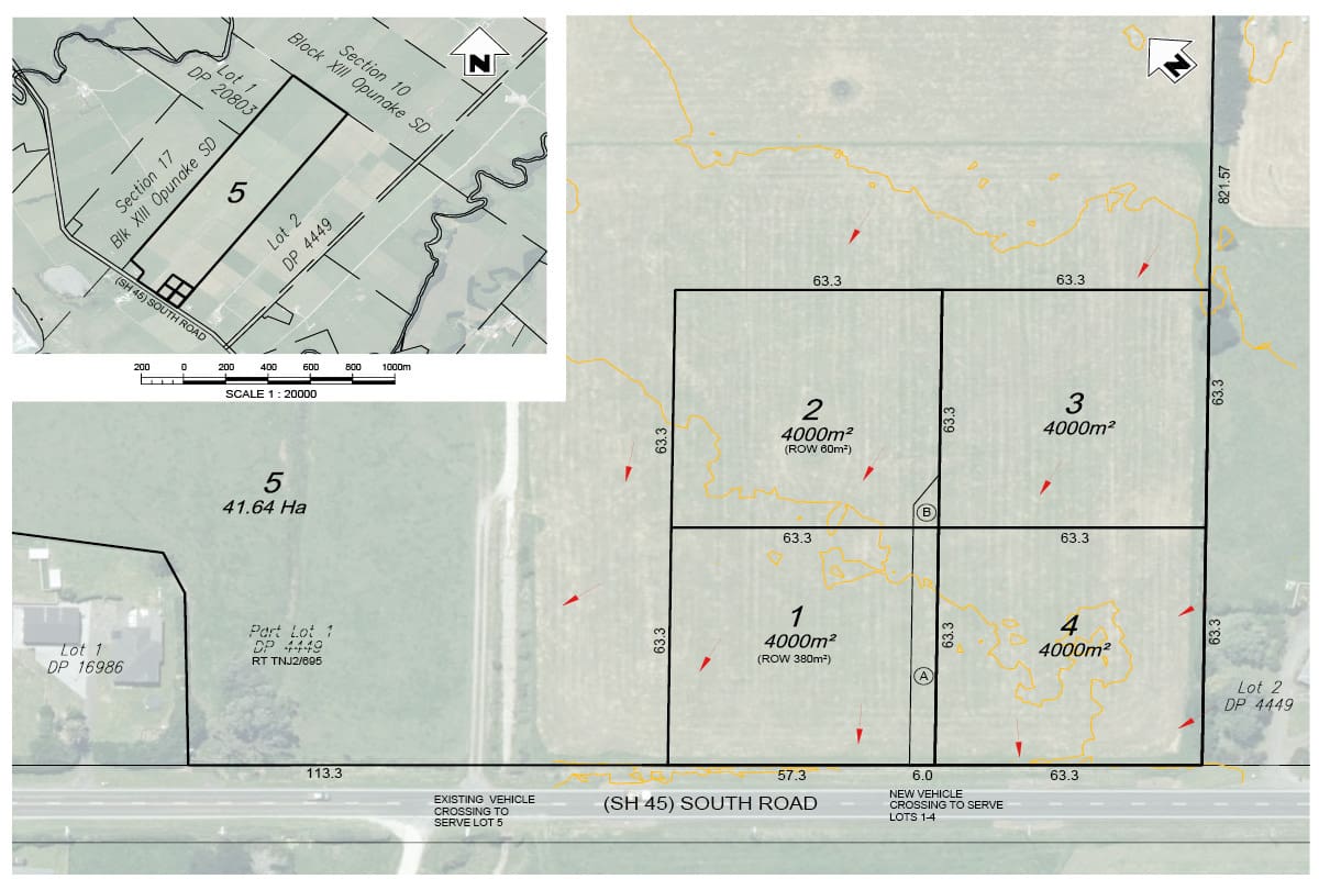 Off Surf Highway 45 the shared ROW provides easy access to all four sections, with power connections available at the entrance. Located less than a 5minute drive to Opunake it’s time to start planning that dream home.