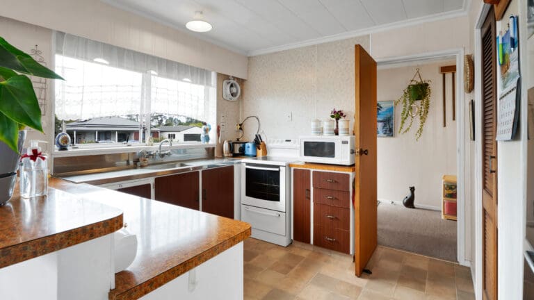 As you enter, you’re welcomed into a well-appointed kitchen that seamlessly connects to the dining area before flowing into the spacious lounge—perfect for both relaxed living and entertaining.