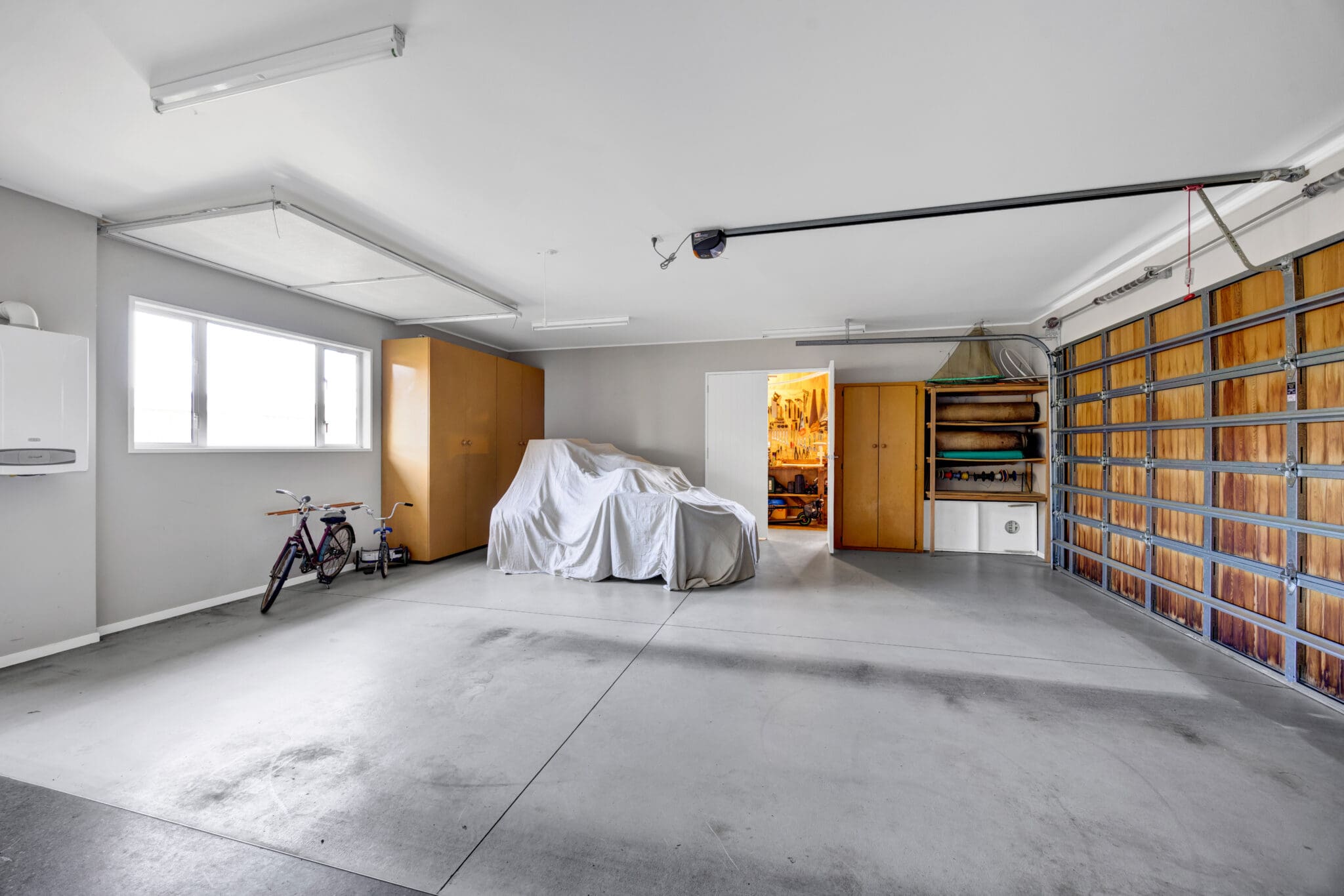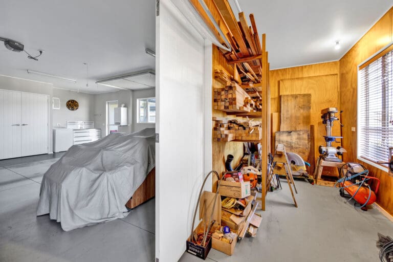 The double garage provides access to the laundry area and to a well-equipped workshop, ideal for those who enjoy DIY projects.